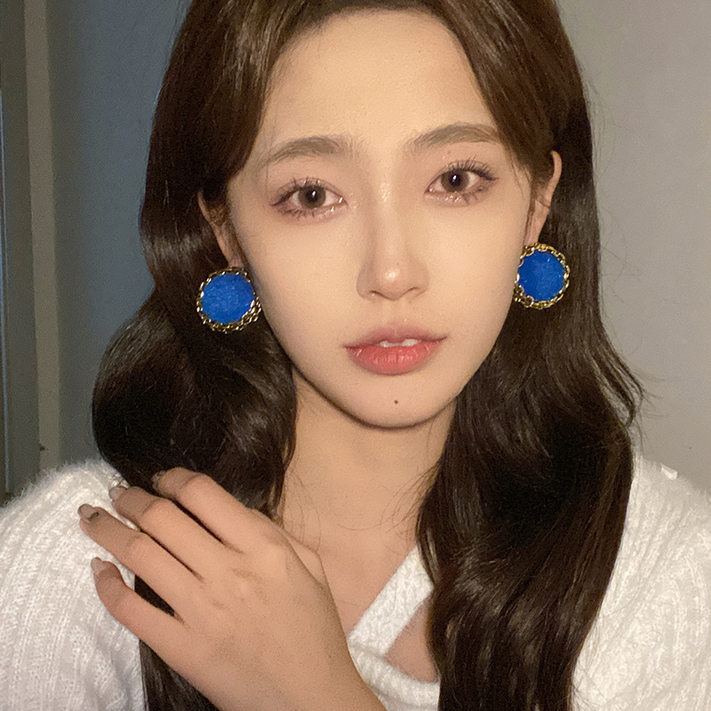 克莱因蓝金属圆形耳钉新款潮韩国精致气质耳环简约复古耳饰