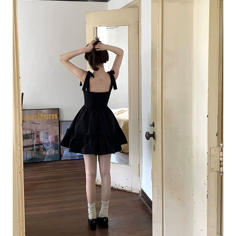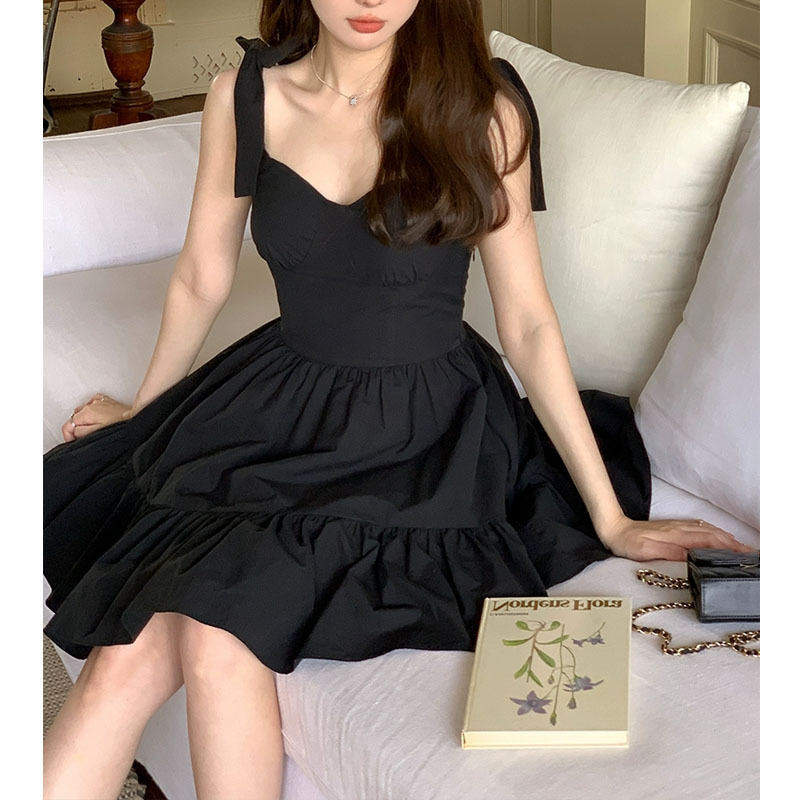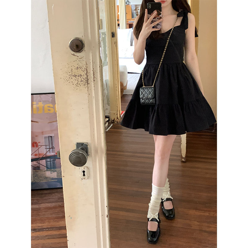 小舞曲法式少女吊带无袖小黑裙连衣裙夏季赫本风系带短裙夏季裙子