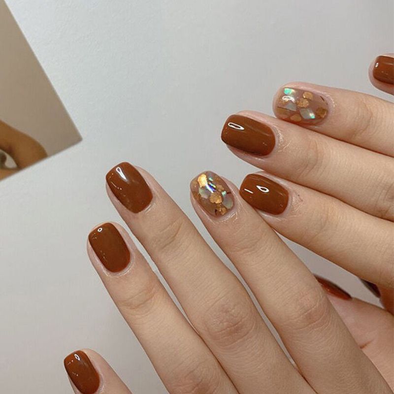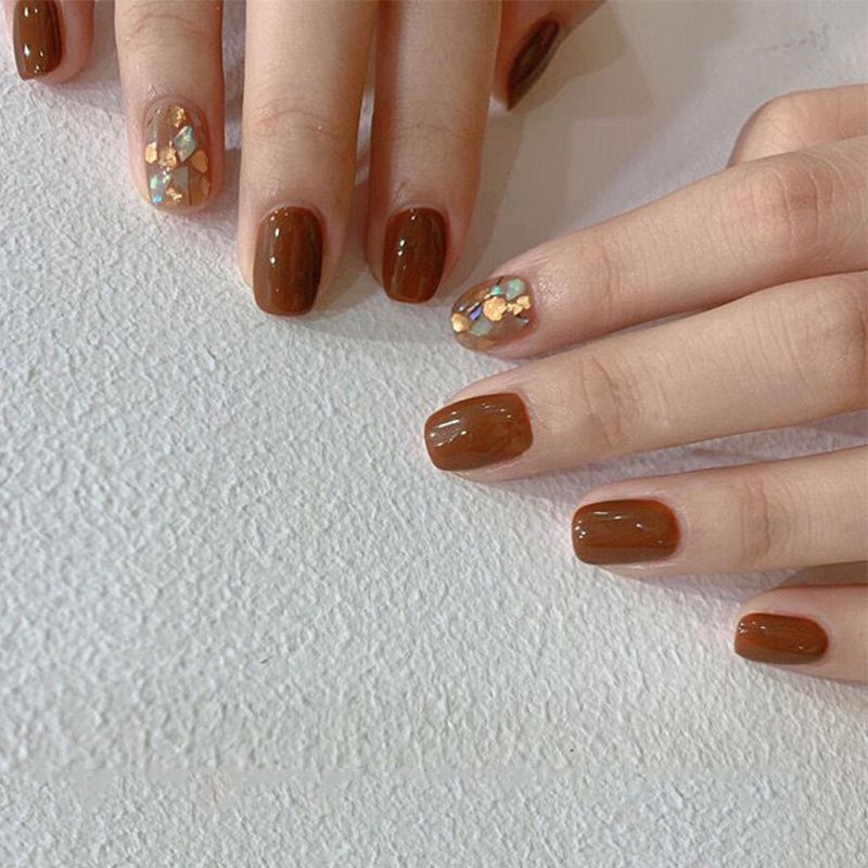 纯手工假指甲贴片秋冬焦糖棕色云母片美甲成品 可拆卸穿戴甲贴片