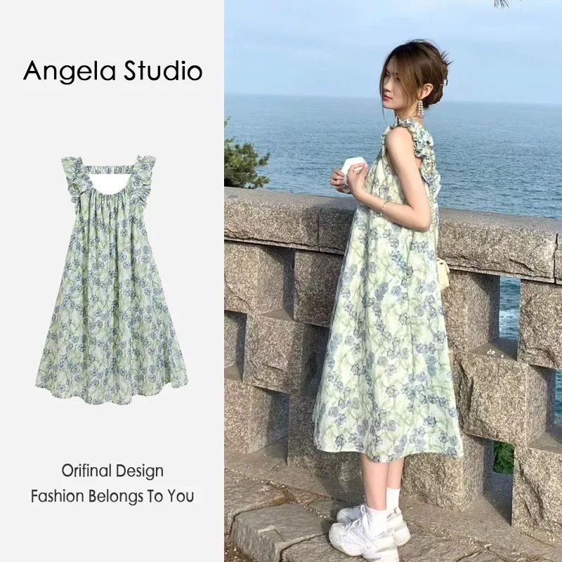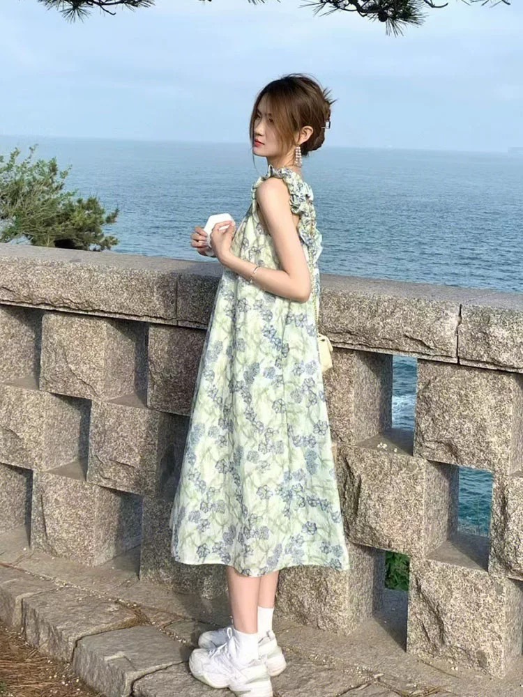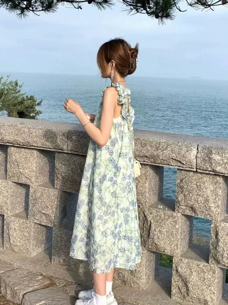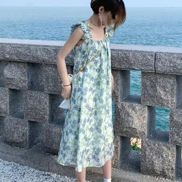 感碎花吊带连衣裙女夏新款法式温柔复古小个子过膝显瘦长裙子