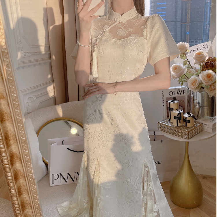 法式复古旗袍连衣裙女夏季新款温柔风裙子