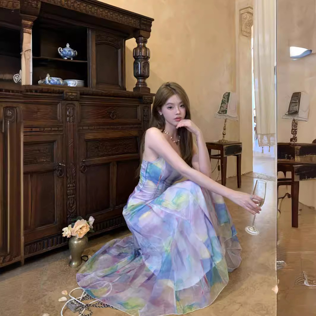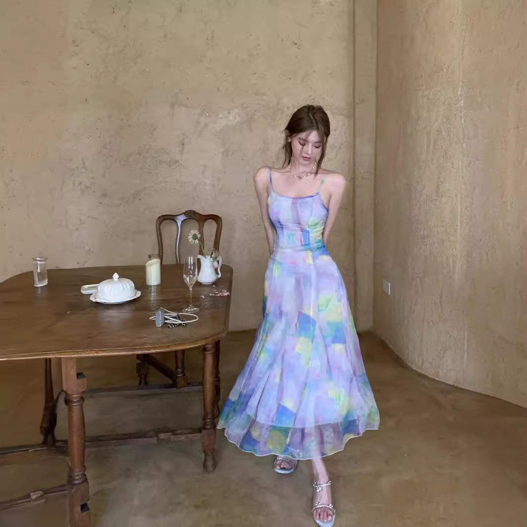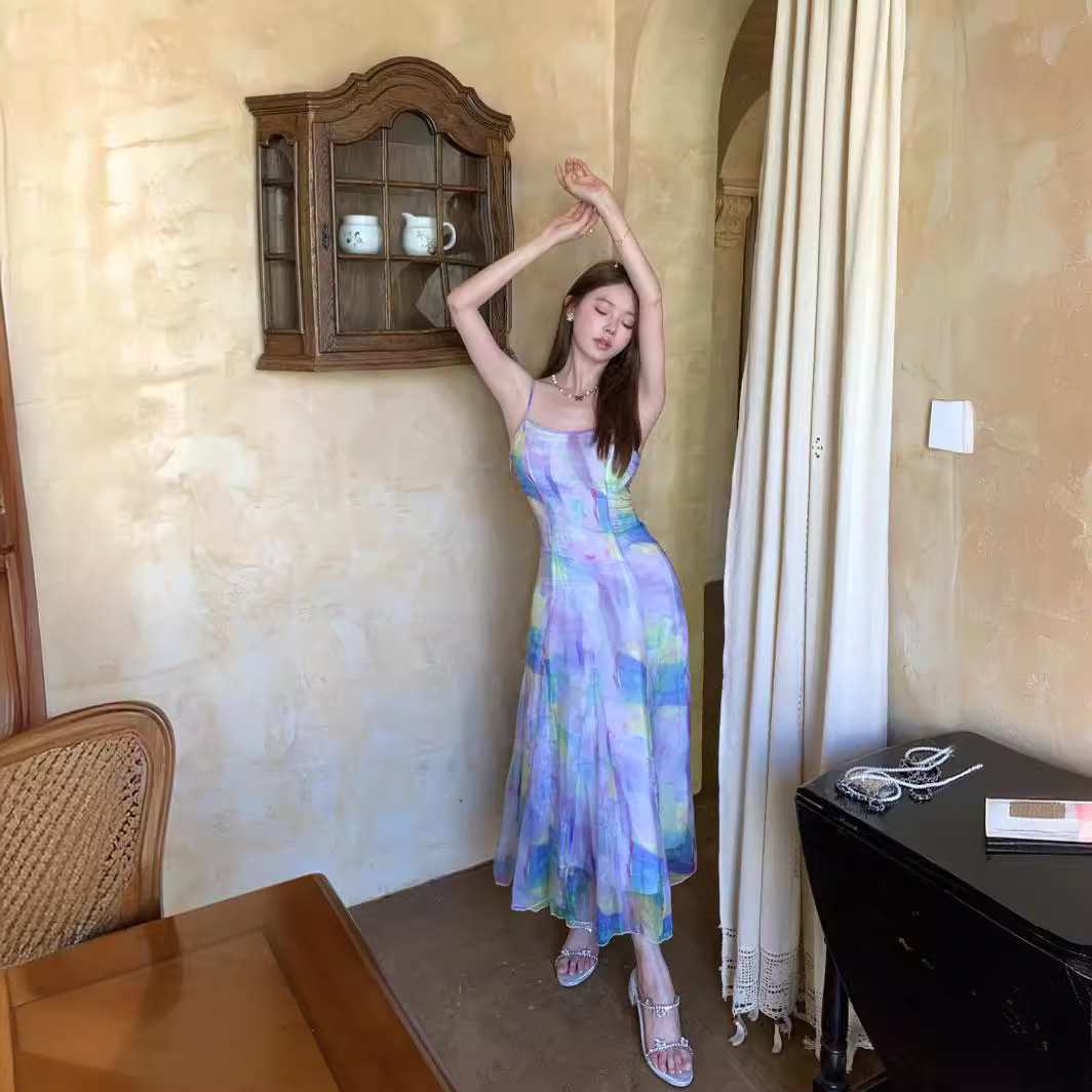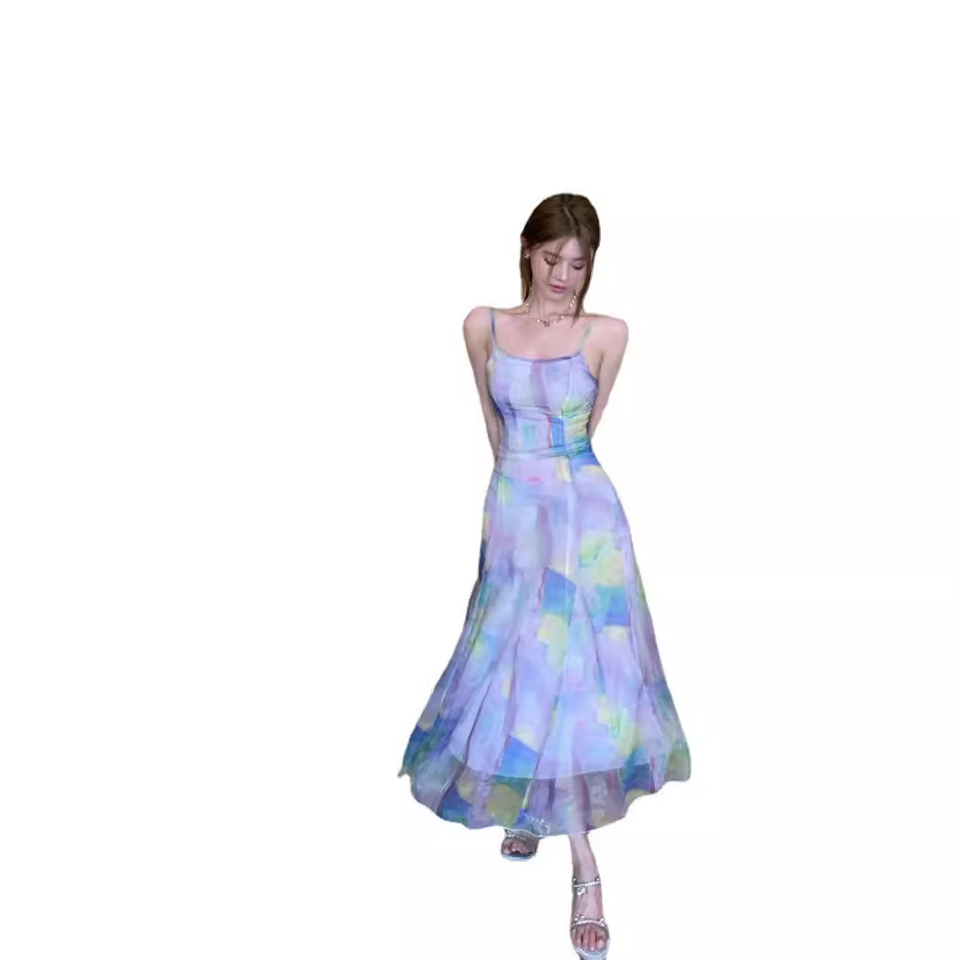 夏季新款人鱼诱惑超大摆幅海边度假长款吊带连衣裙显瘦裙设计感女