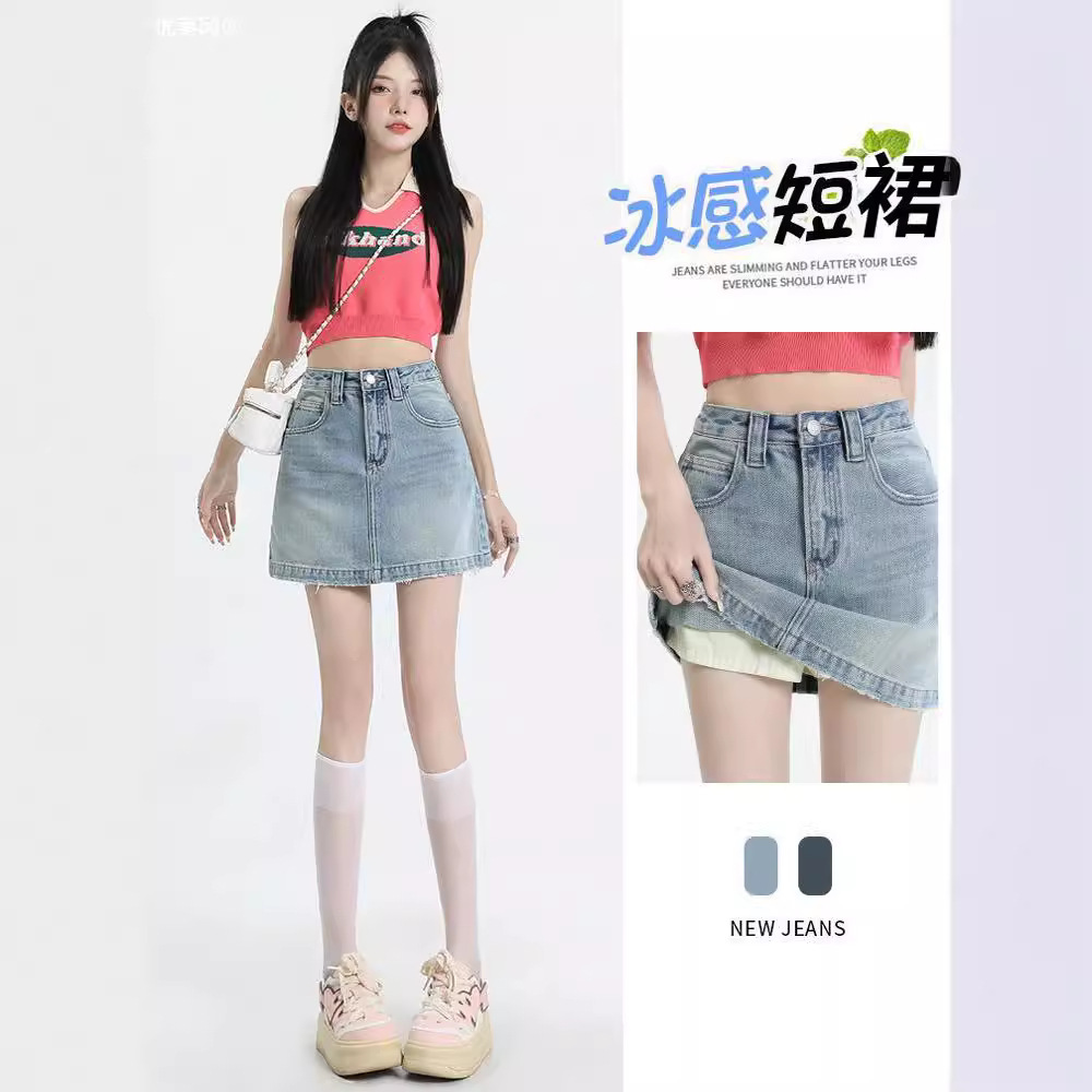 小米熊冰丝牛仔短裙女半身裙子夏季新款高腰显瘦a字裙包臀女