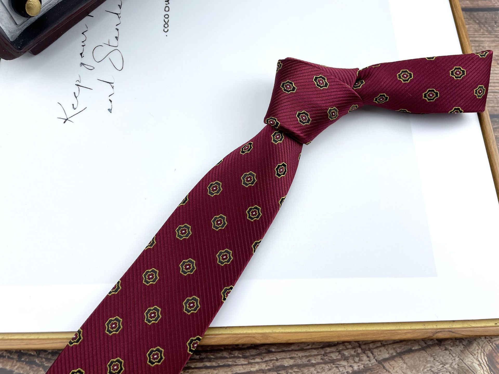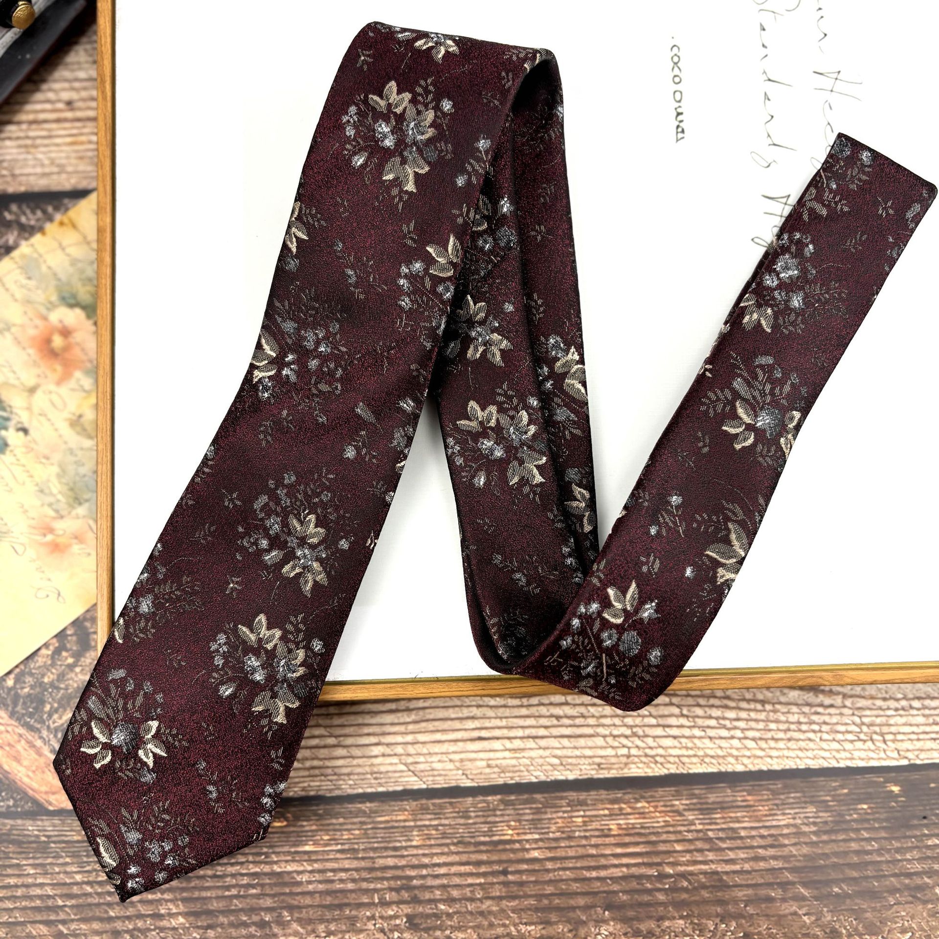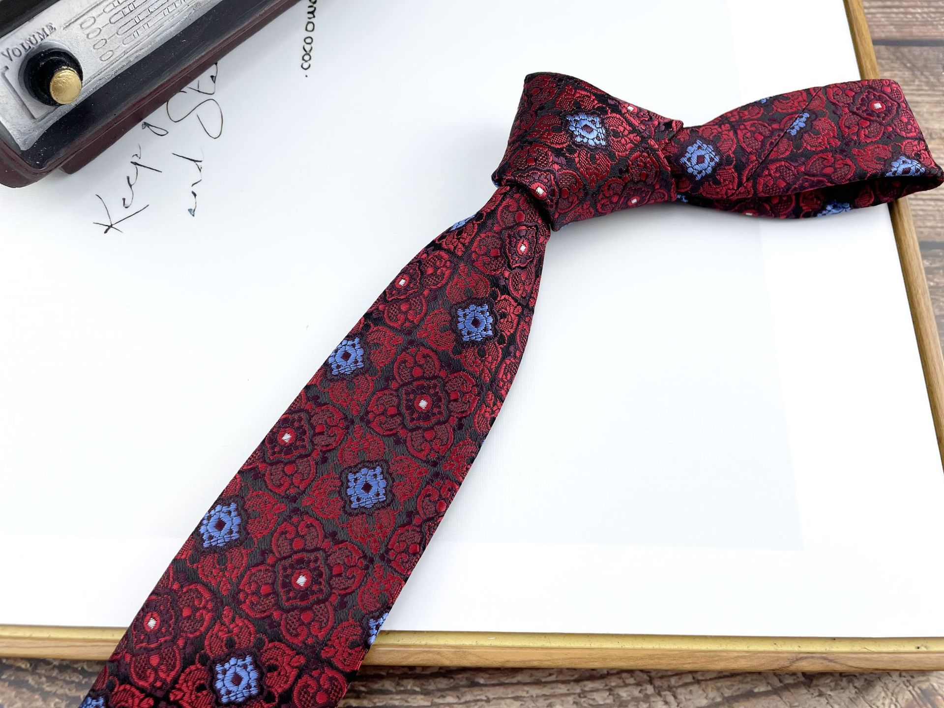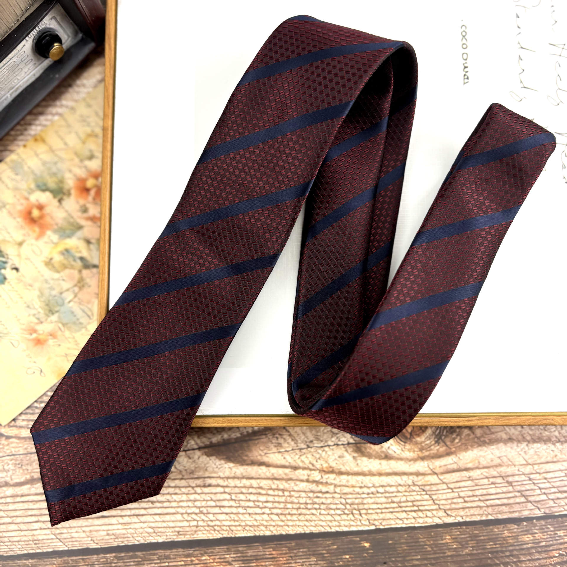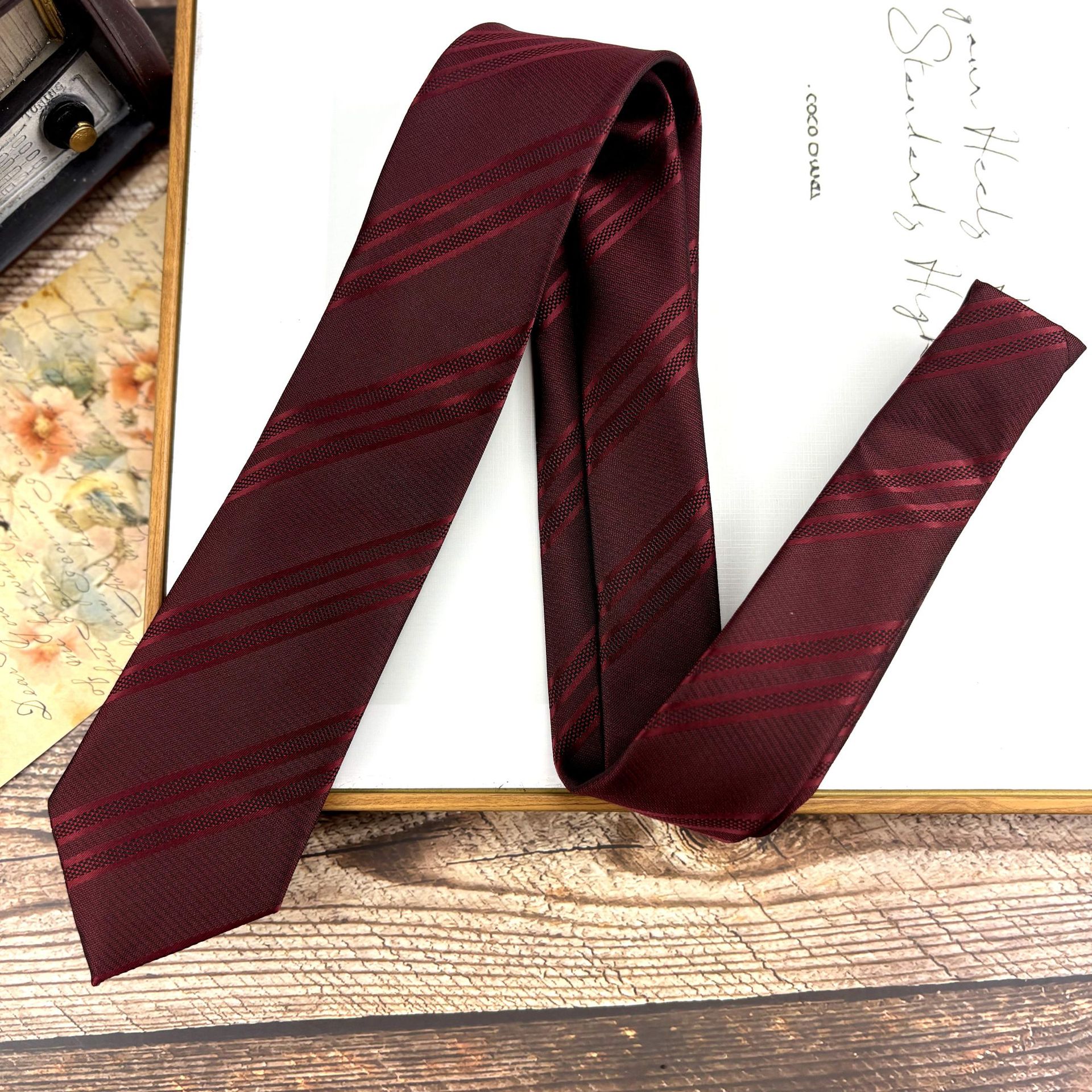领带男休闲百搭英伦复古花纹女7CM 条纹时尚男士商务正装职业暗红