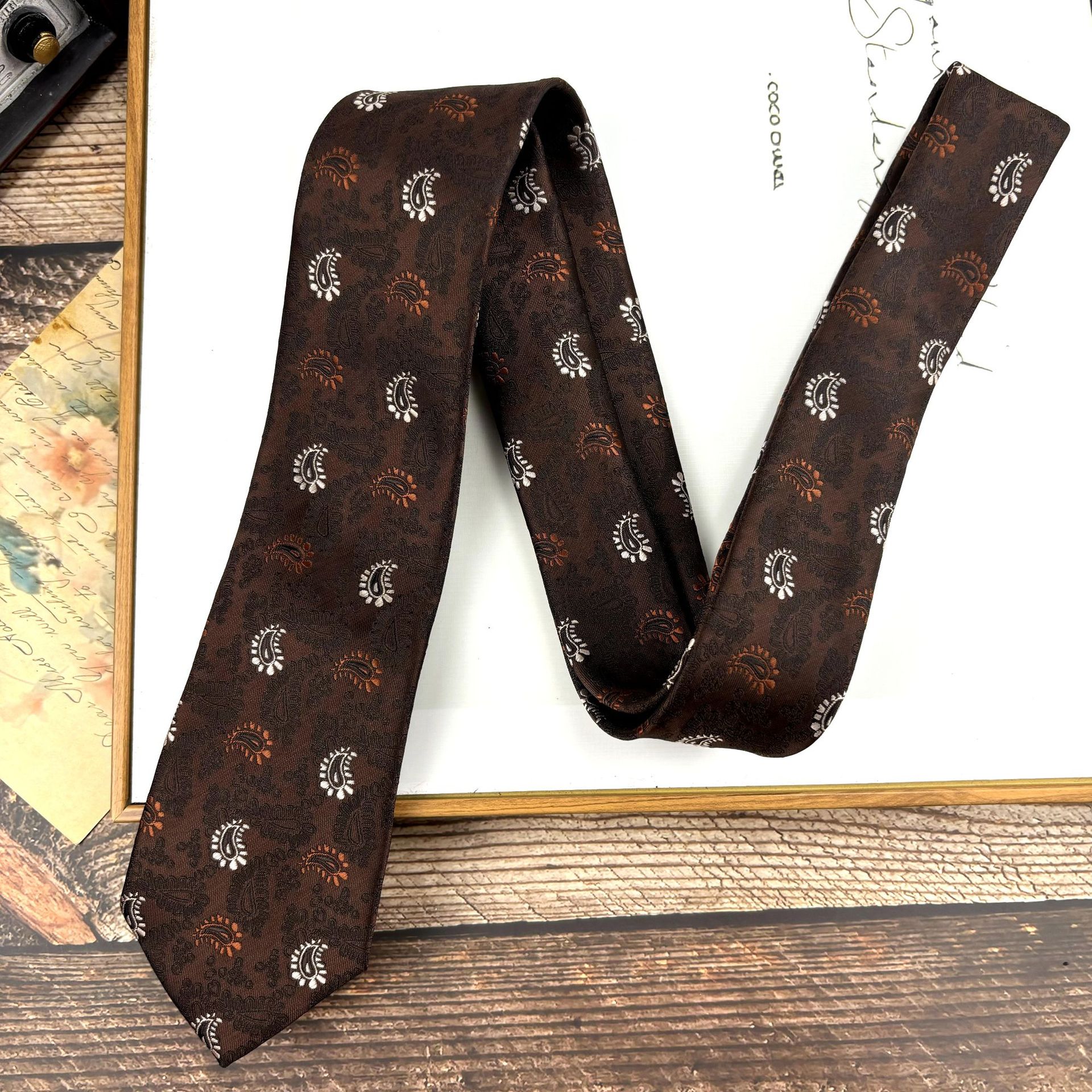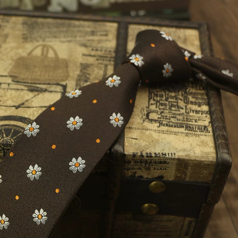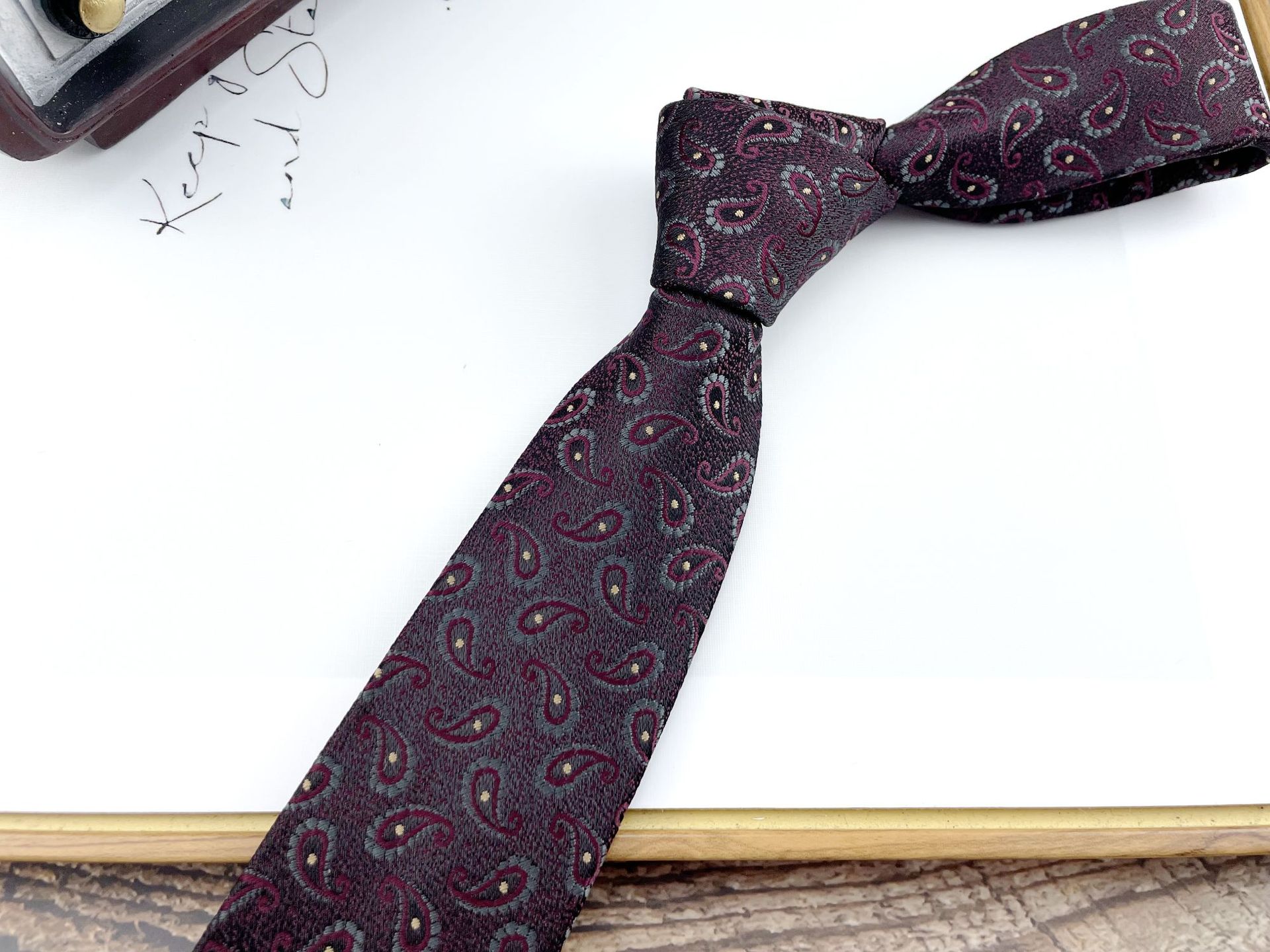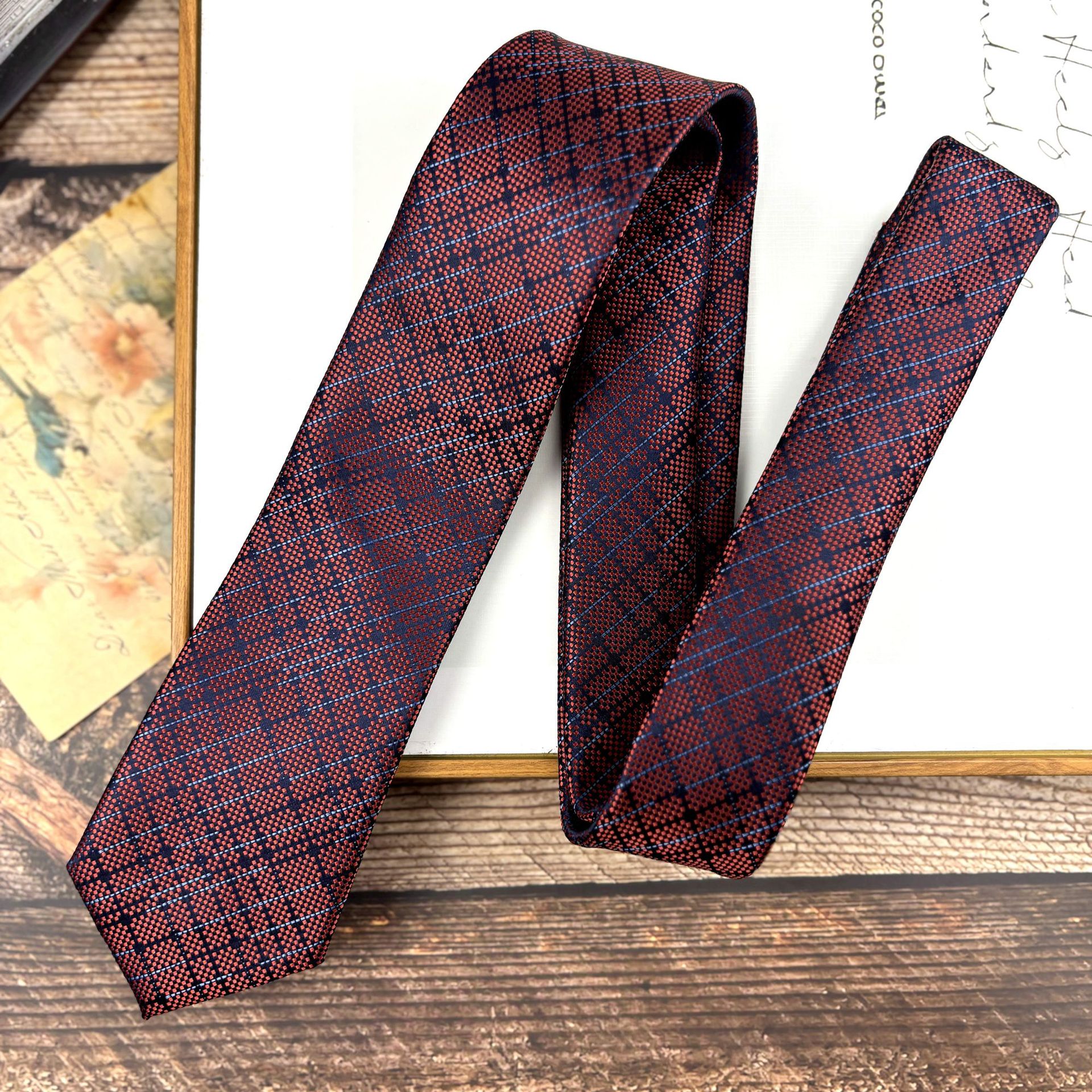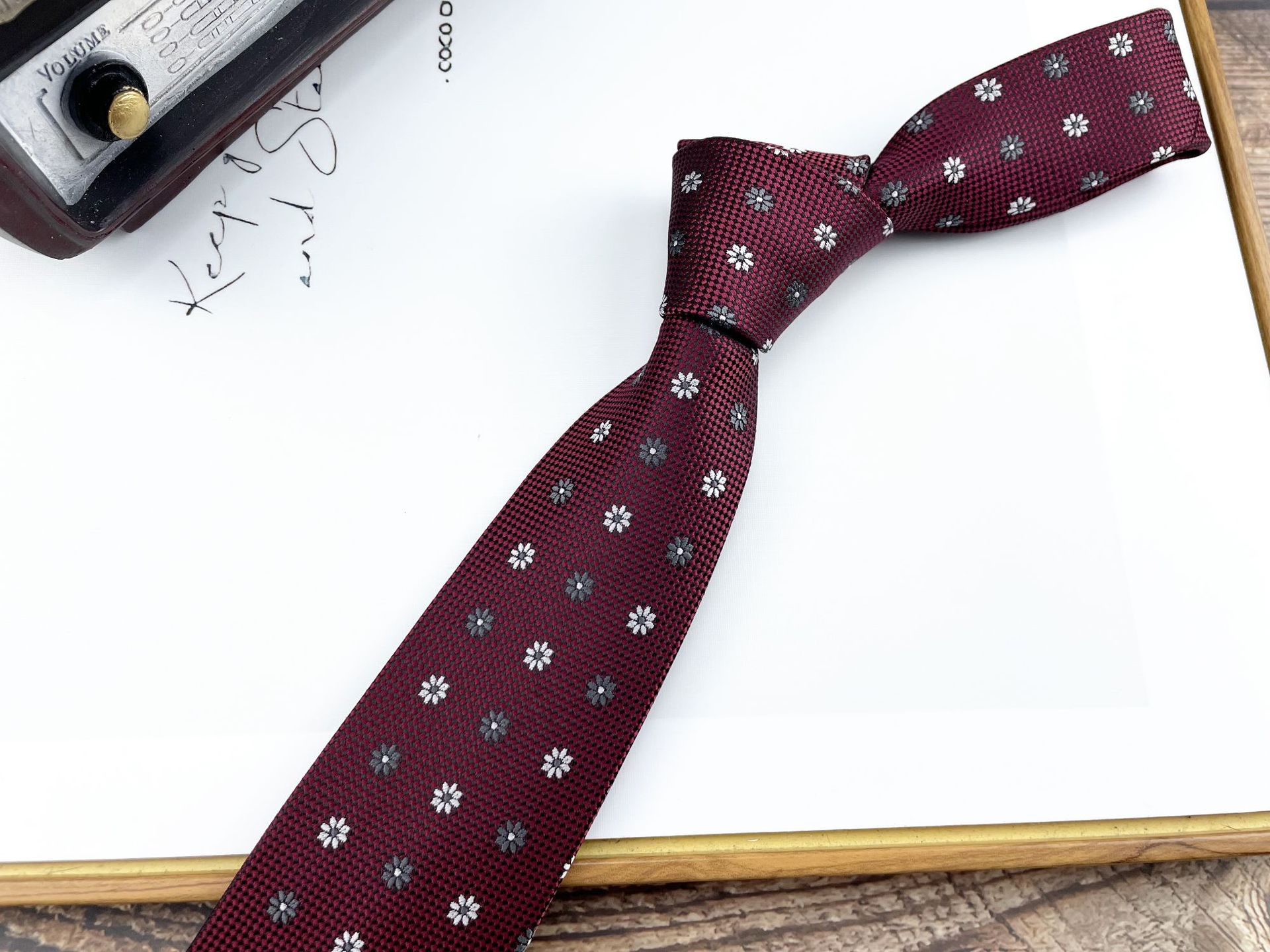 领带男休闲百搭英伦复古花纹女7CM 条纹时尚男士商务正装职业暗红