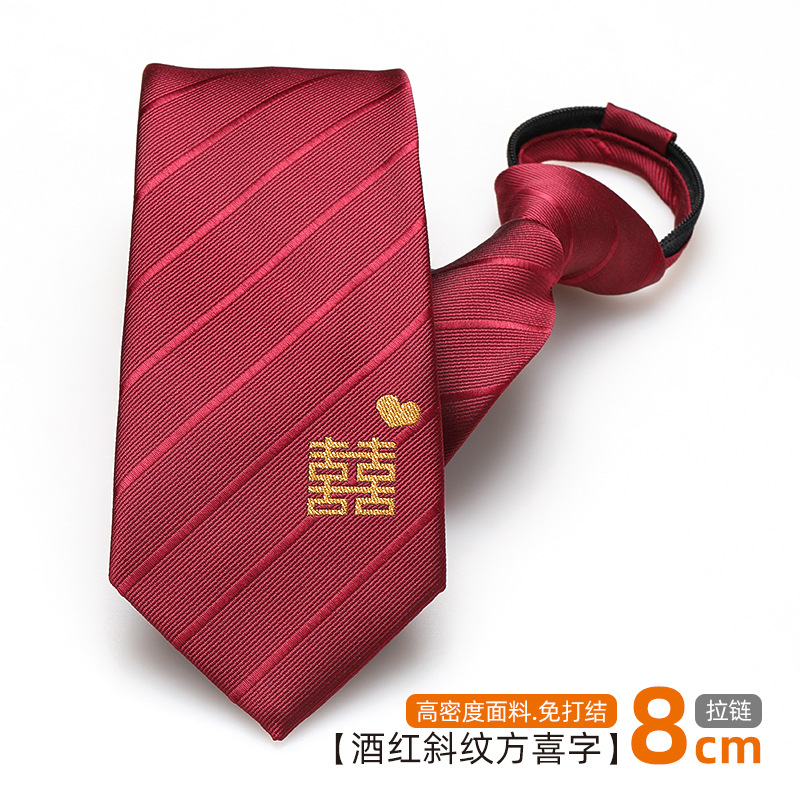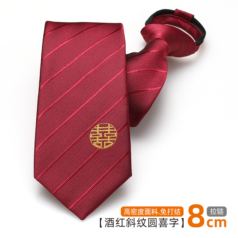 男士职业正装领带商务红色黑色结婚新郎韩版拉链免打一拉的领带
