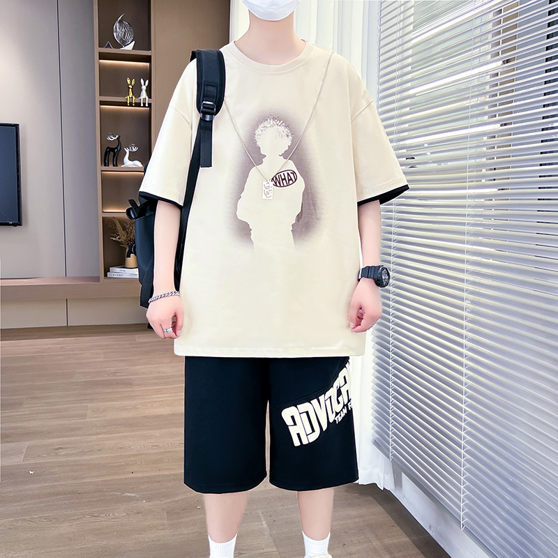 夏季新款圆领青少年短袖T恤套装时尚打底内搭简单年轻通勤