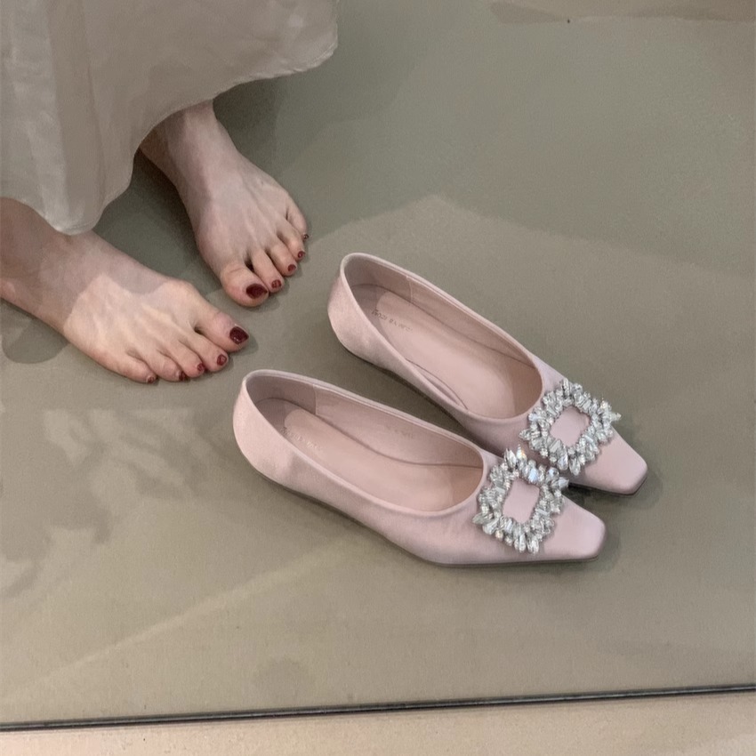法式气质水钻单鞋女2025年仙女风绸面配裙子方头浅口内增高晚晚鞋