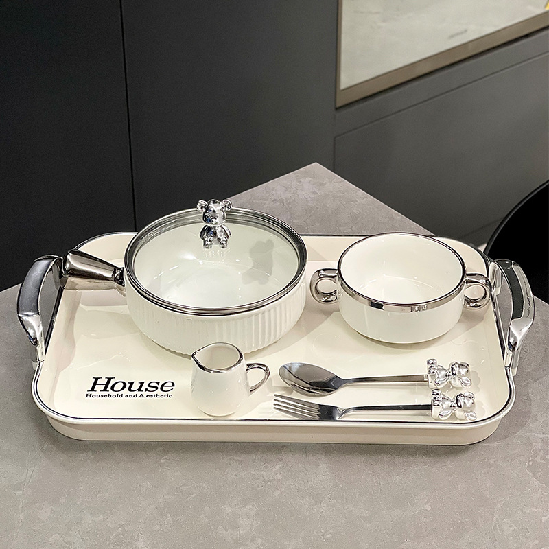 高颜值一人食陶瓷餐具套装 创意女生早餐碗盘汤面碗一小套单人份