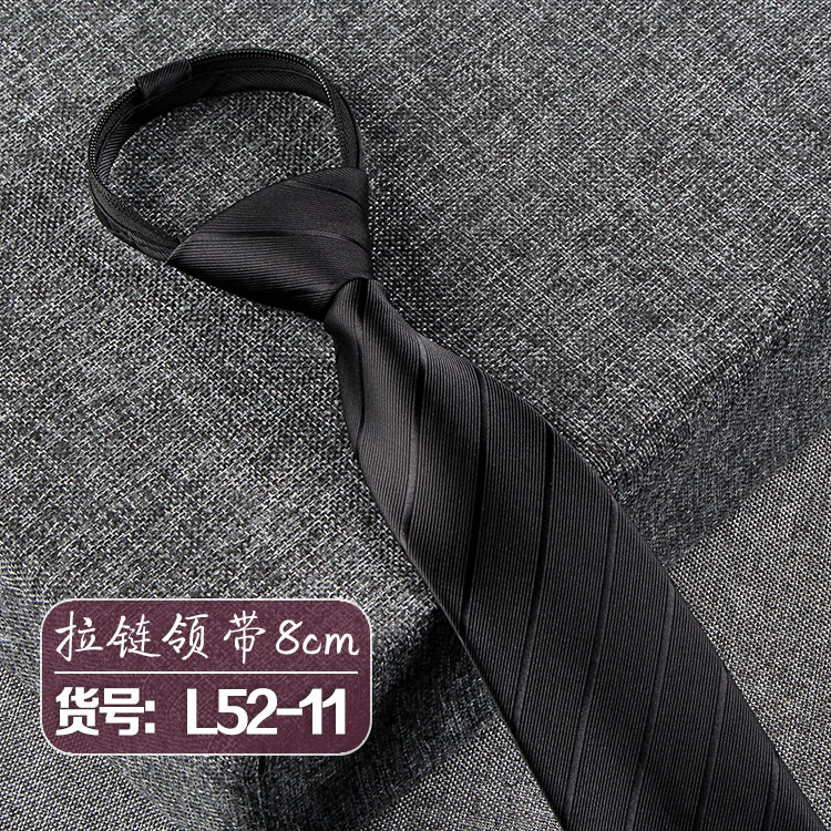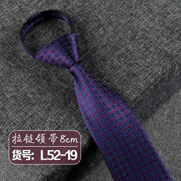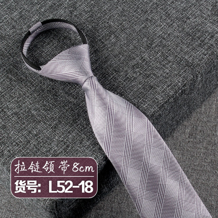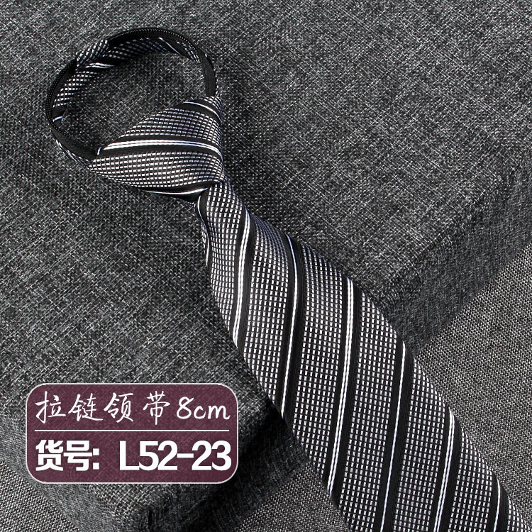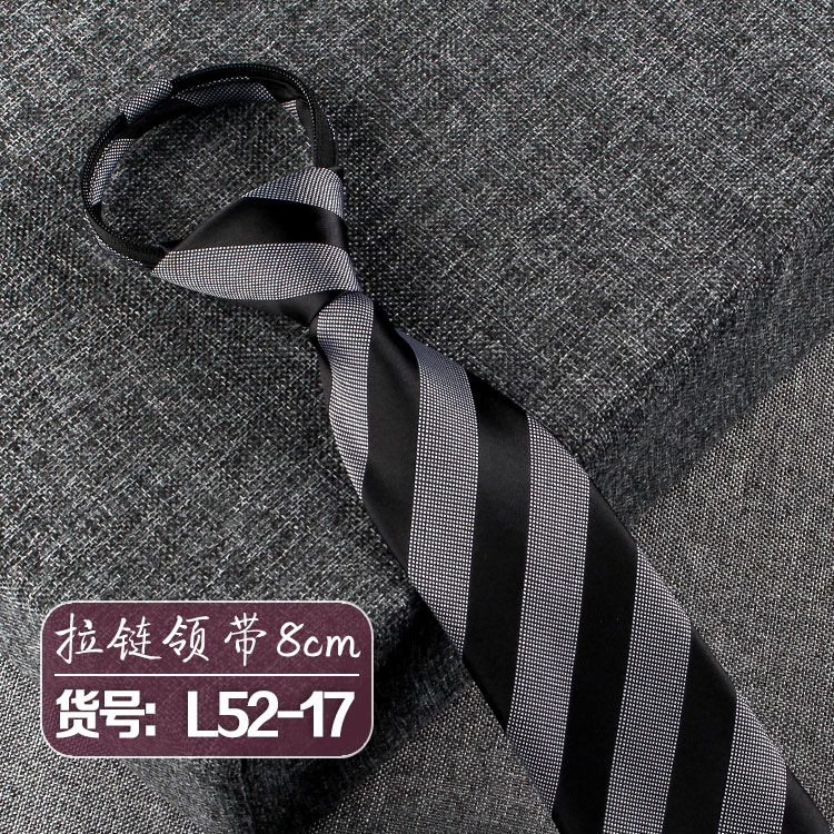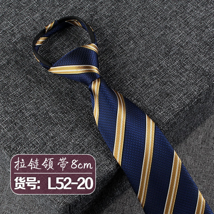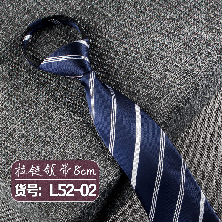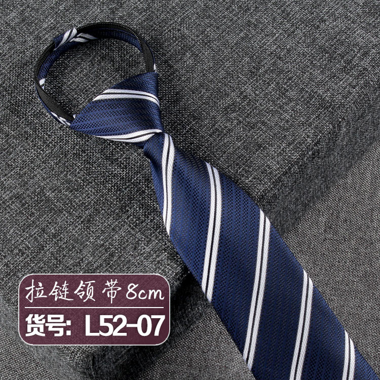 男士商务正装免打结懒人拉链领带8cm职业工作蓝色条纹