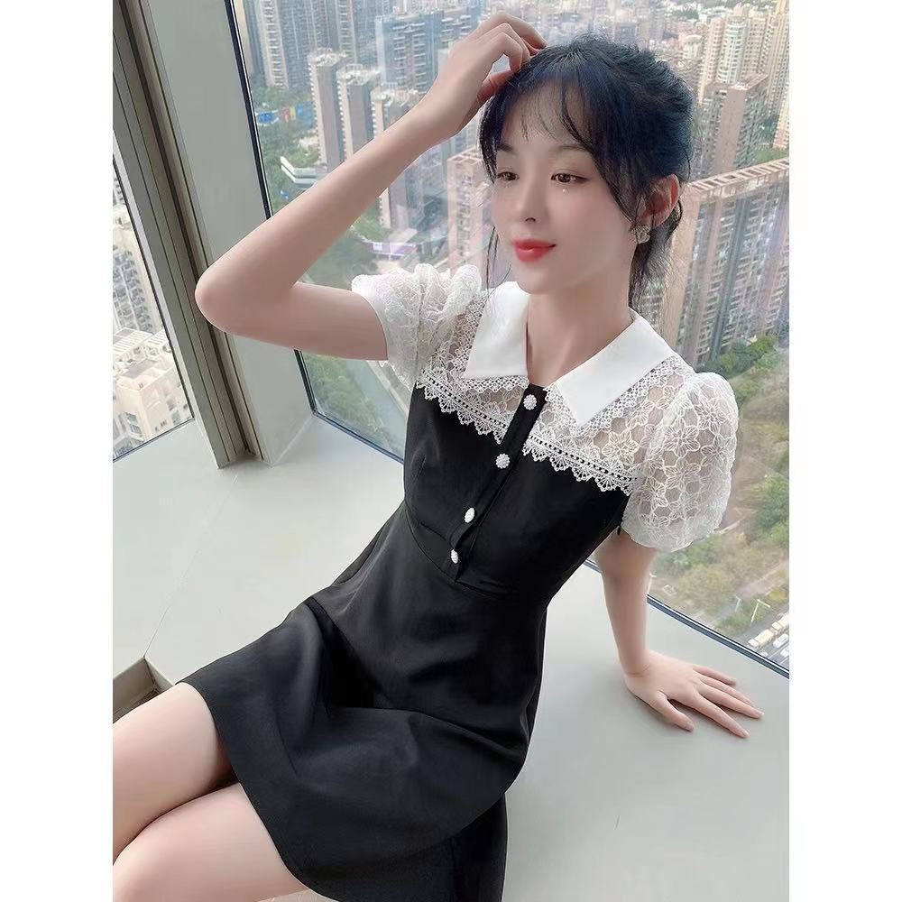 黑色蕾丝刺绣夏季连衣裙女夏装新款女网纱气质修身小黑裙子夏