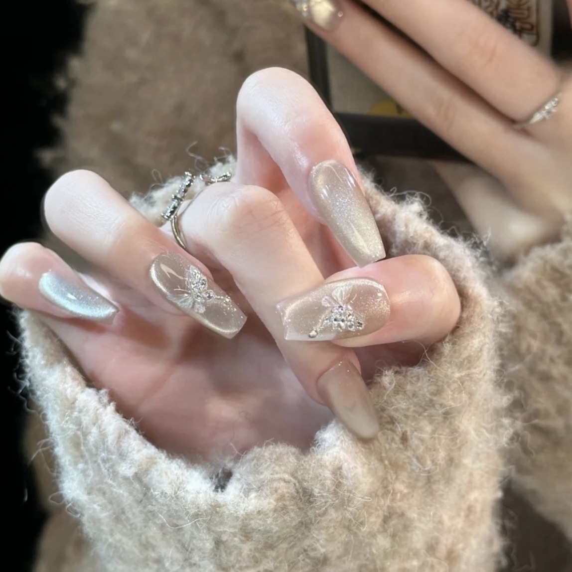 【上春山】纯手工穿戴甲轻奢显白百搭纯欲款蝴蝶猫眼冰透光疗甲