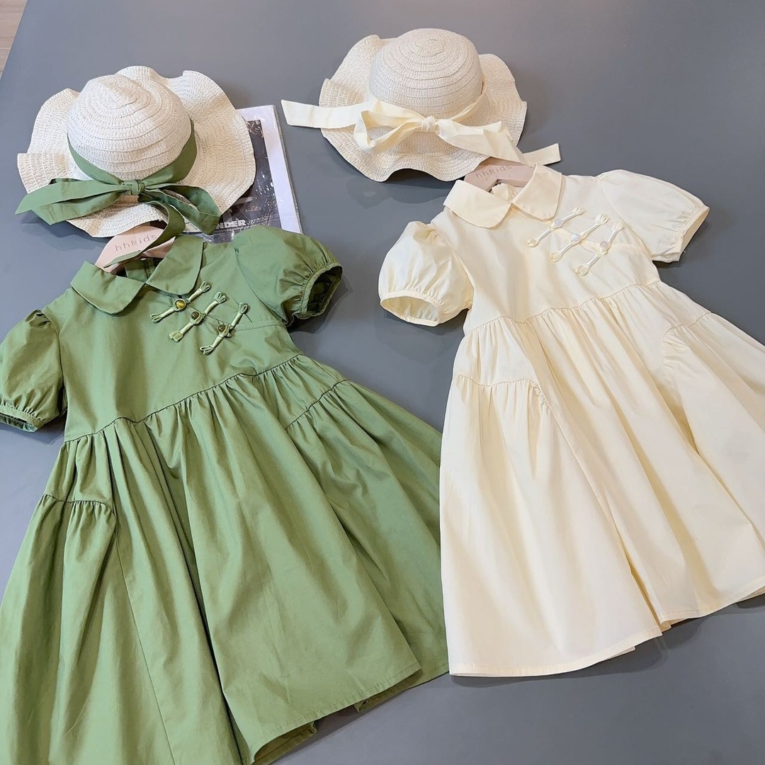 新品女童连衣裙夏季2025新款泡泡袖长裙国风盘扣中小童超仙裙子