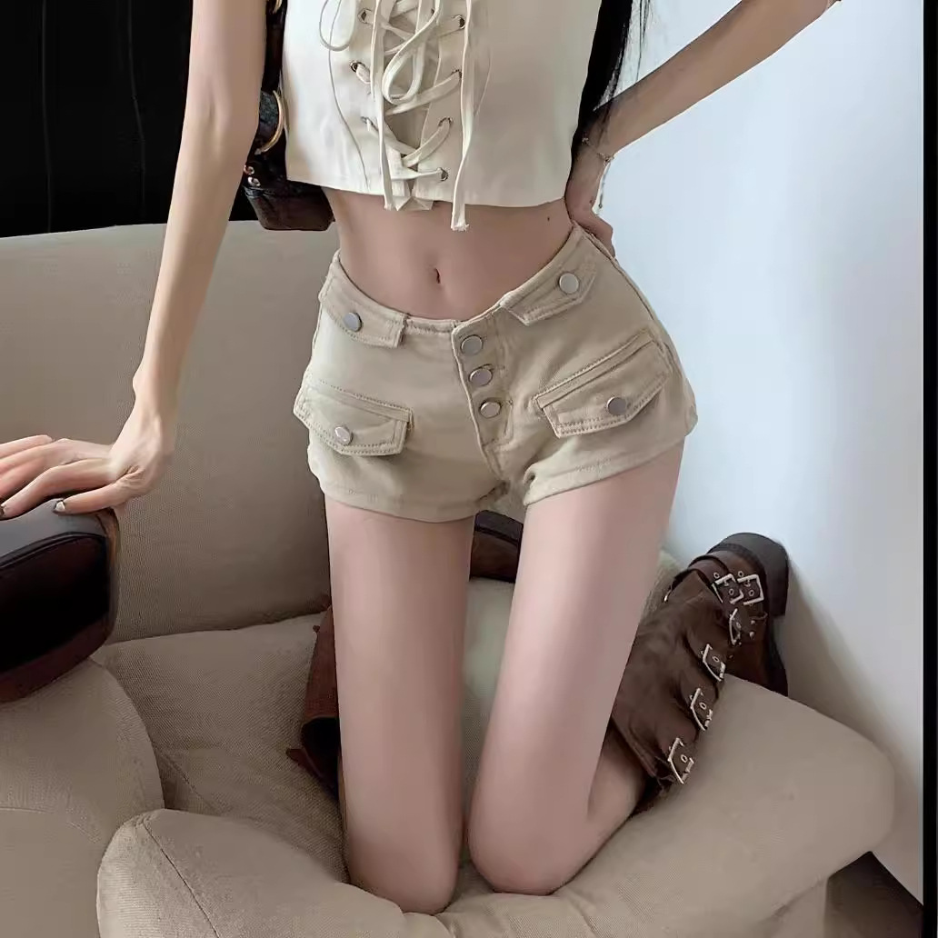 浅色工装牛仔短裤女夏季热裤小个子性感低腰显瘦弹力直筒时尚裤子