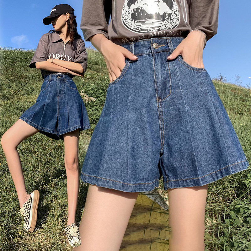 胖mm大码牛仔短裤百褶a字宽松高腰显瘦阔腿裤学生夏加肥女装200斤