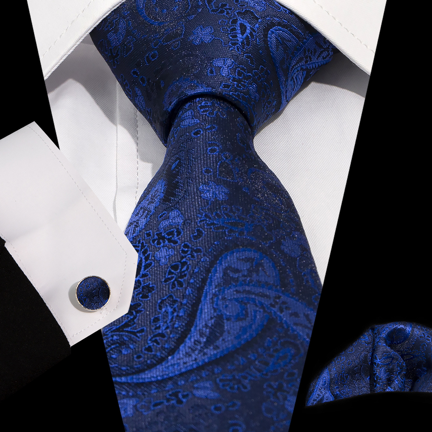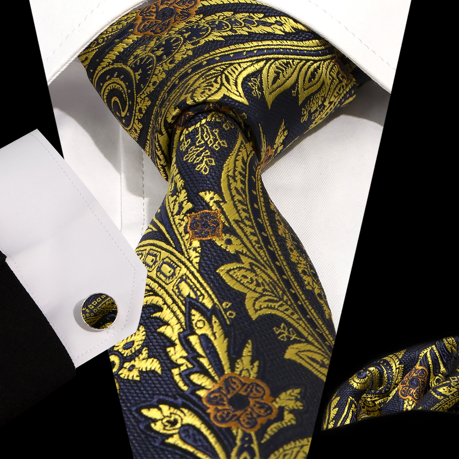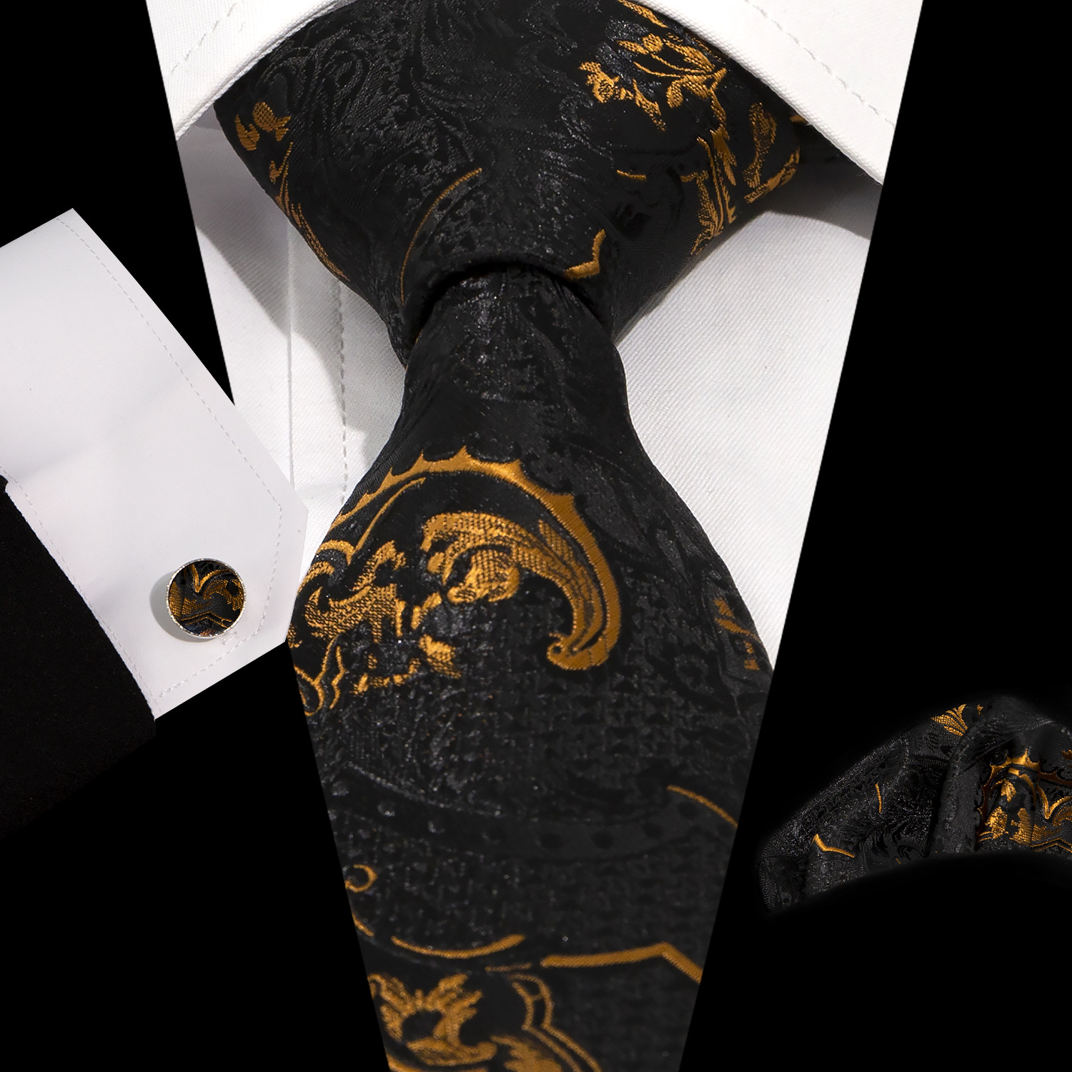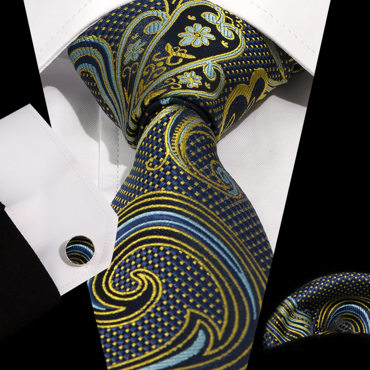 男士领带口袋巾袖扣套装 商务正装 复古8.5cm提花佩斯利领带3件套