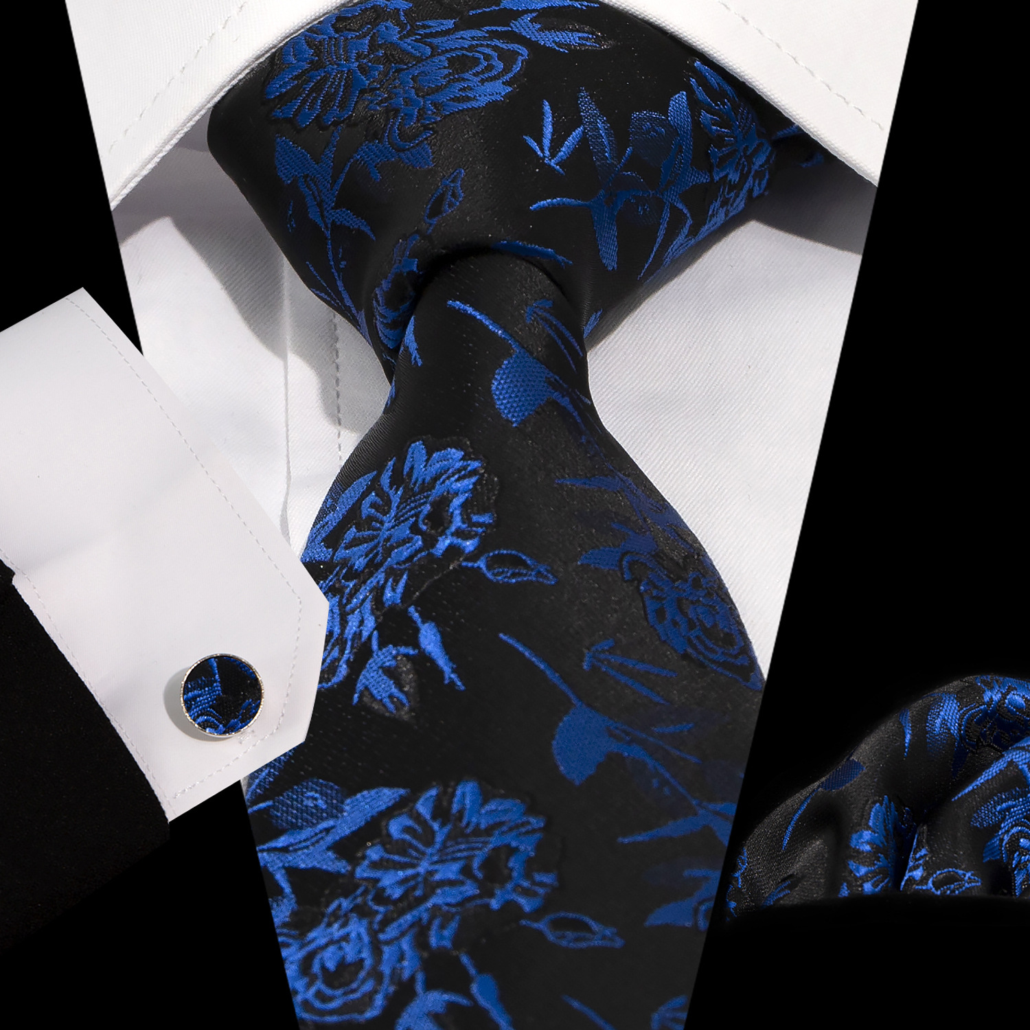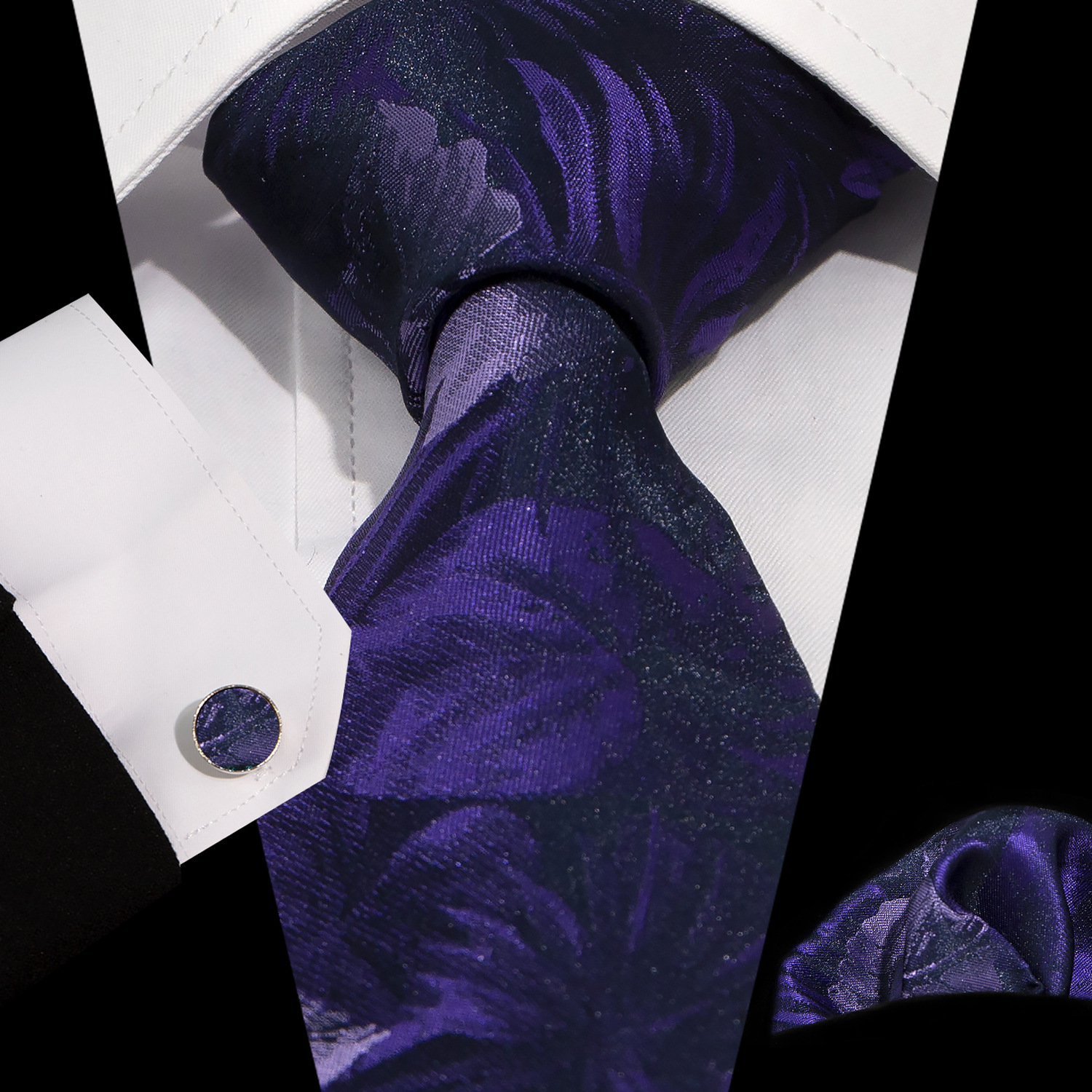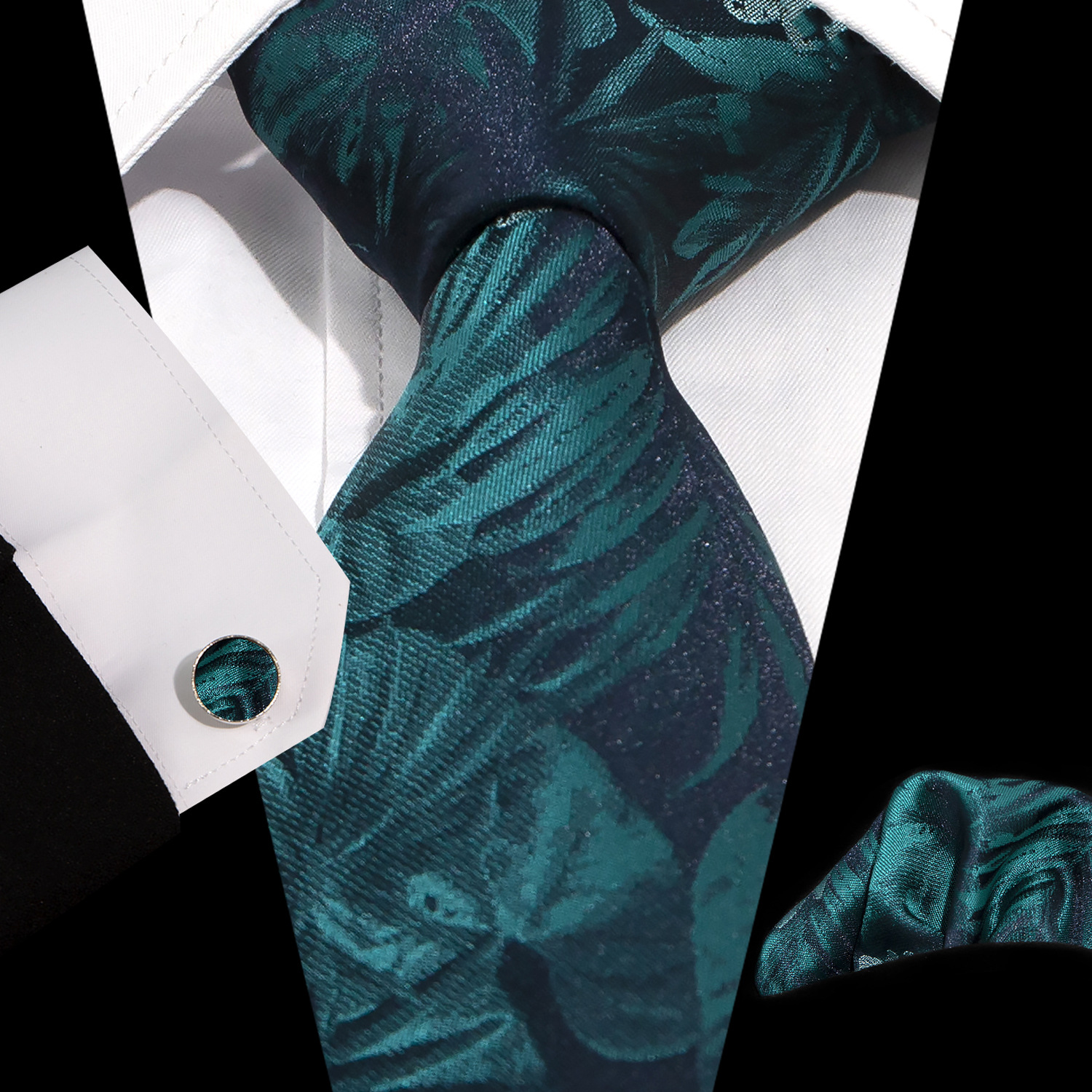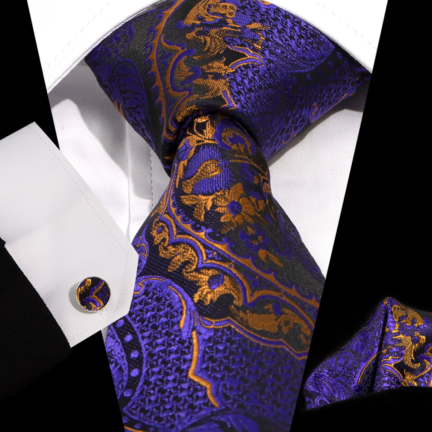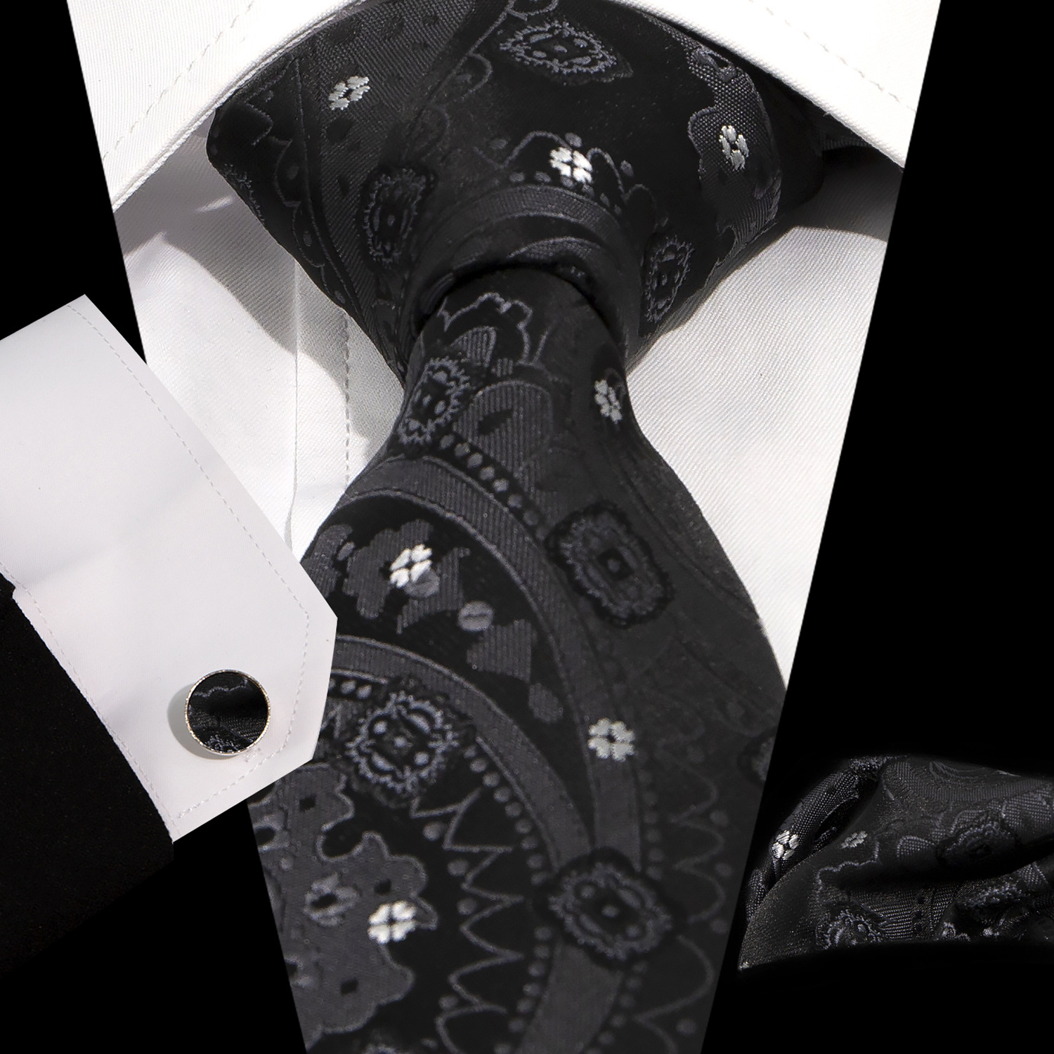 男士领带口袋巾袖扣套装 商务正装 复古8.5cm提花佩斯利领带3件套