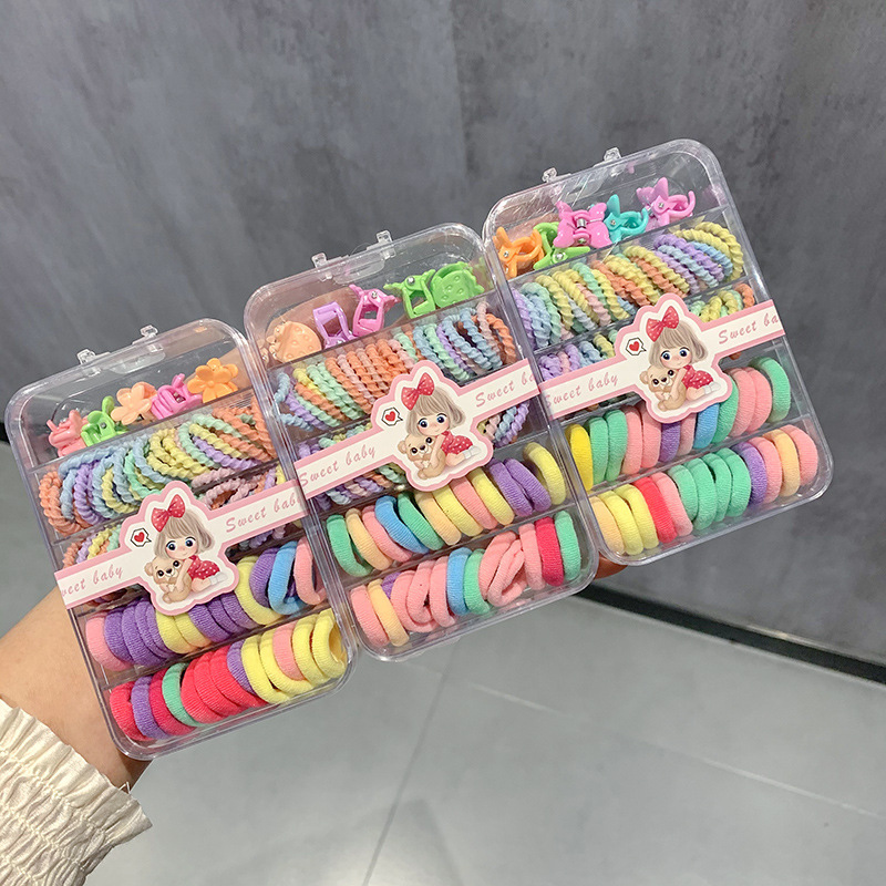 女童糖果色发绳发夹套装高弹力不伤发迷你发圈可爱宝宝橡皮筋