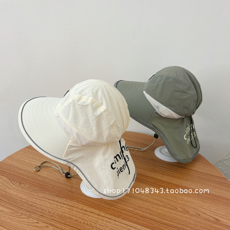 儿童帽子夏季速干薄款网眼大檐遮阳防晒披肩帽宝宝挡紫外线太阳帽