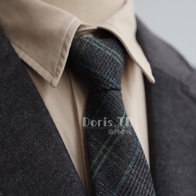 懒人拉链商务正装格子仿羊毛领带 男士 灰色韩版