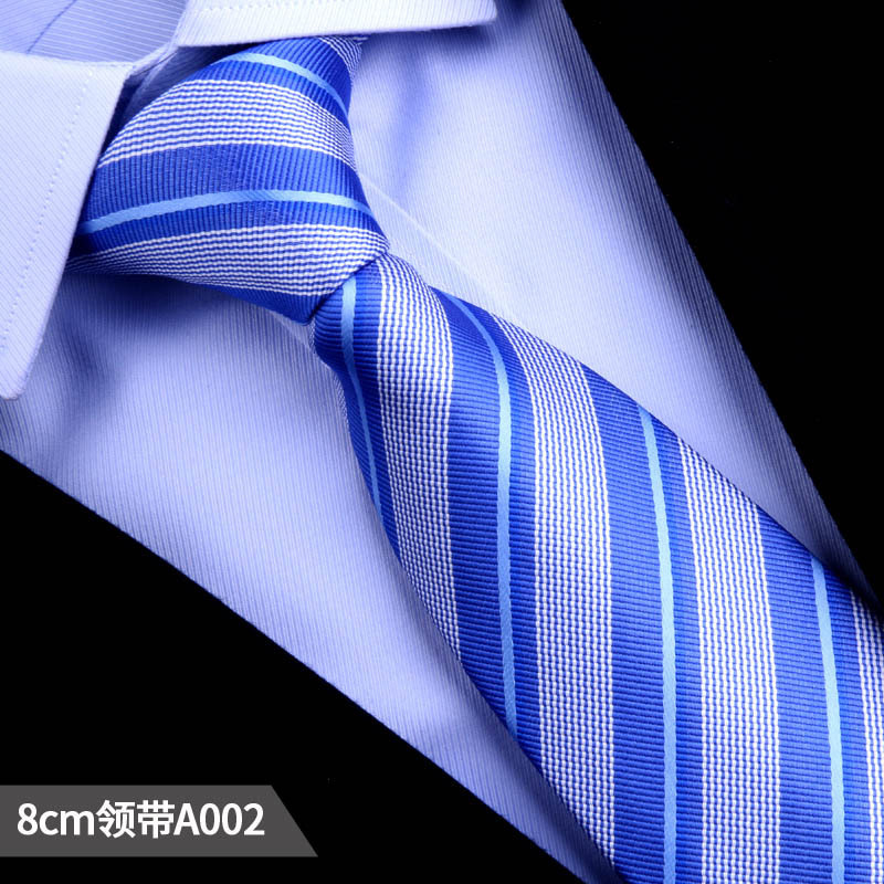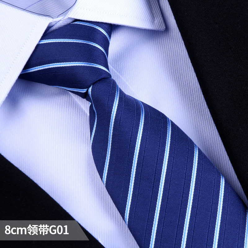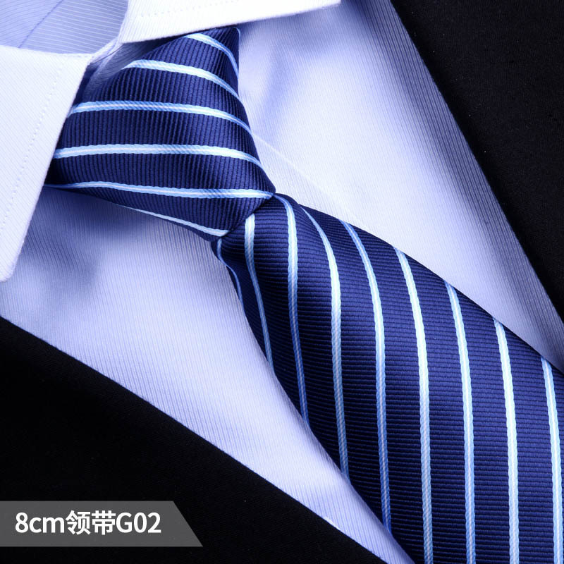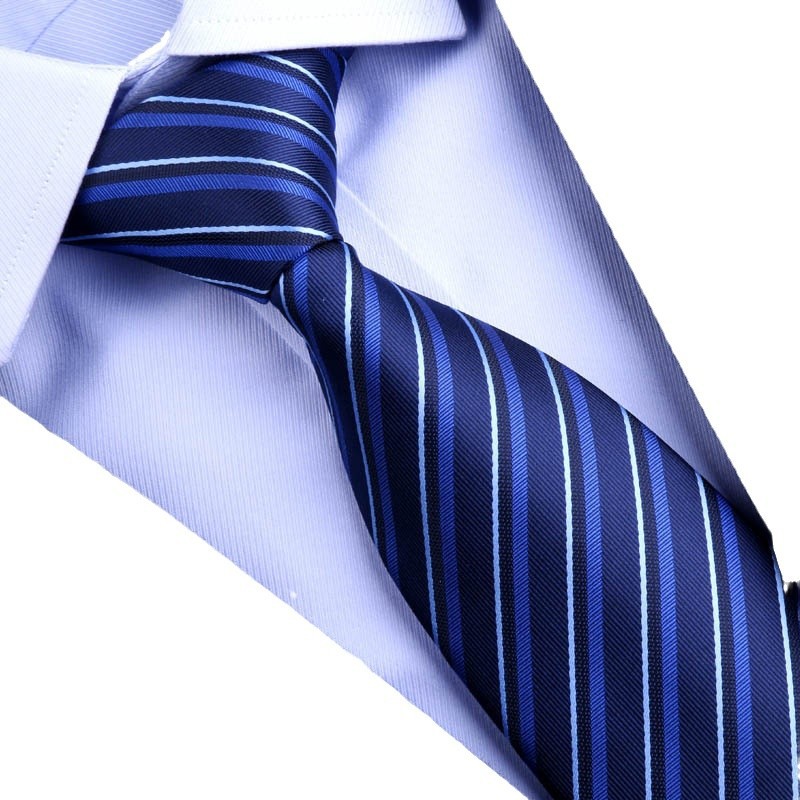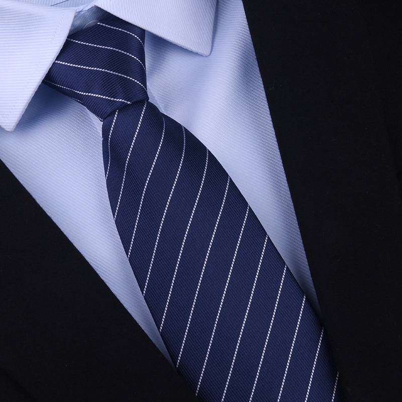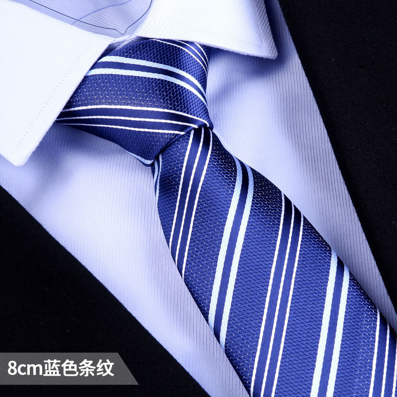 - ((免打拉链)8cm藏青浅蓝条领带 深蓝
