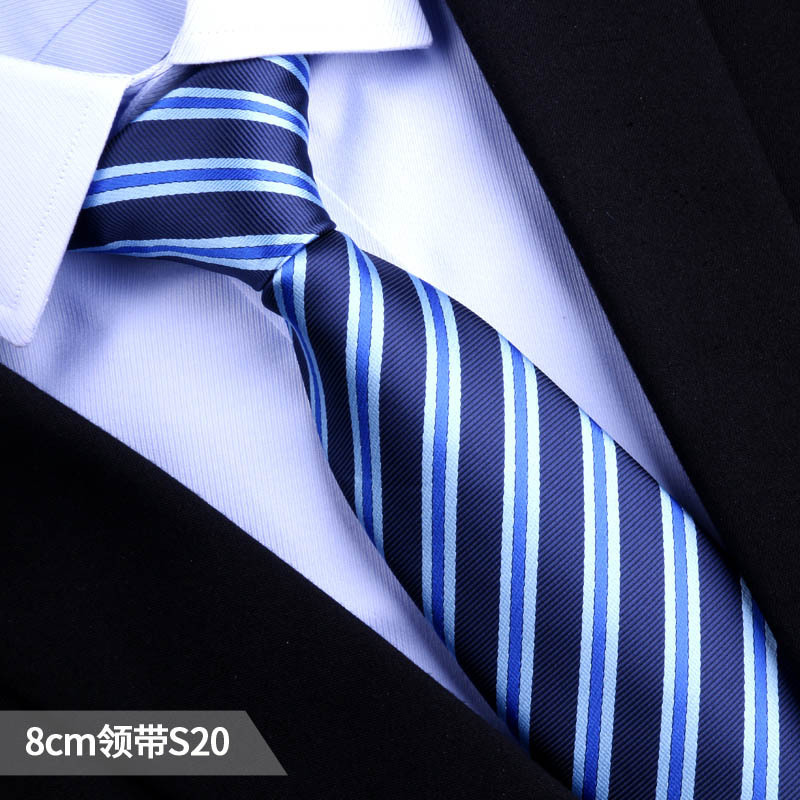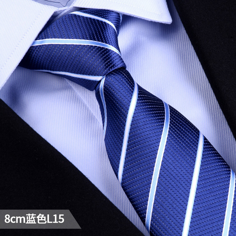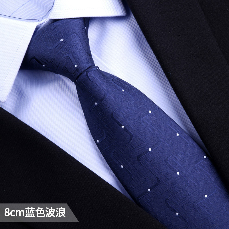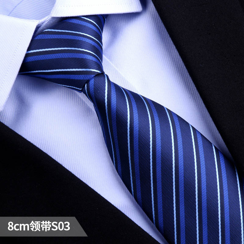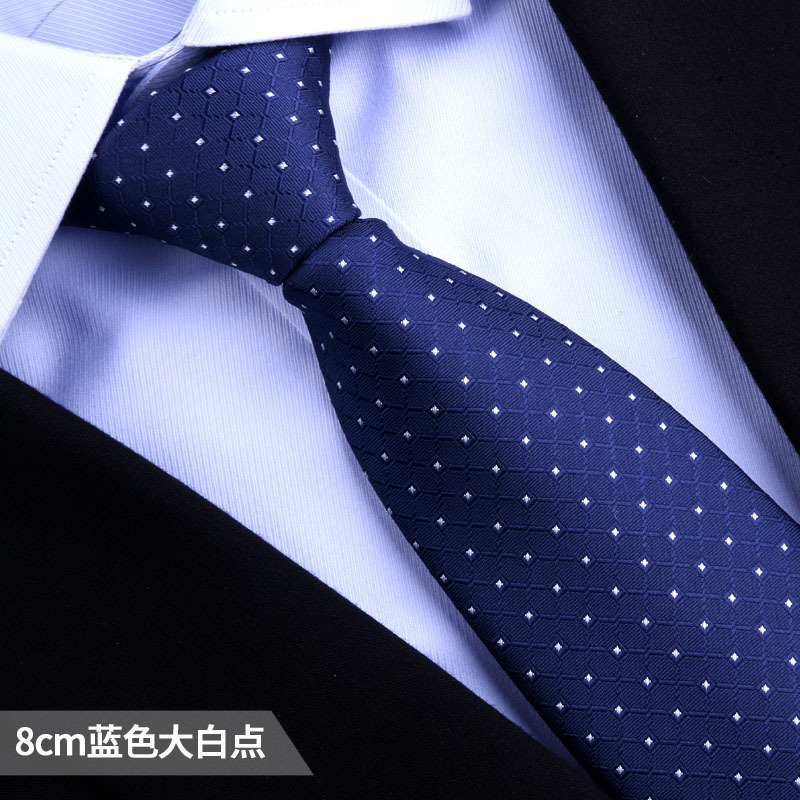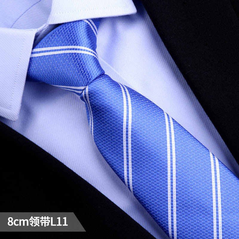 - ((免打拉链)8cm藏青浅蓝条领带 深蓝