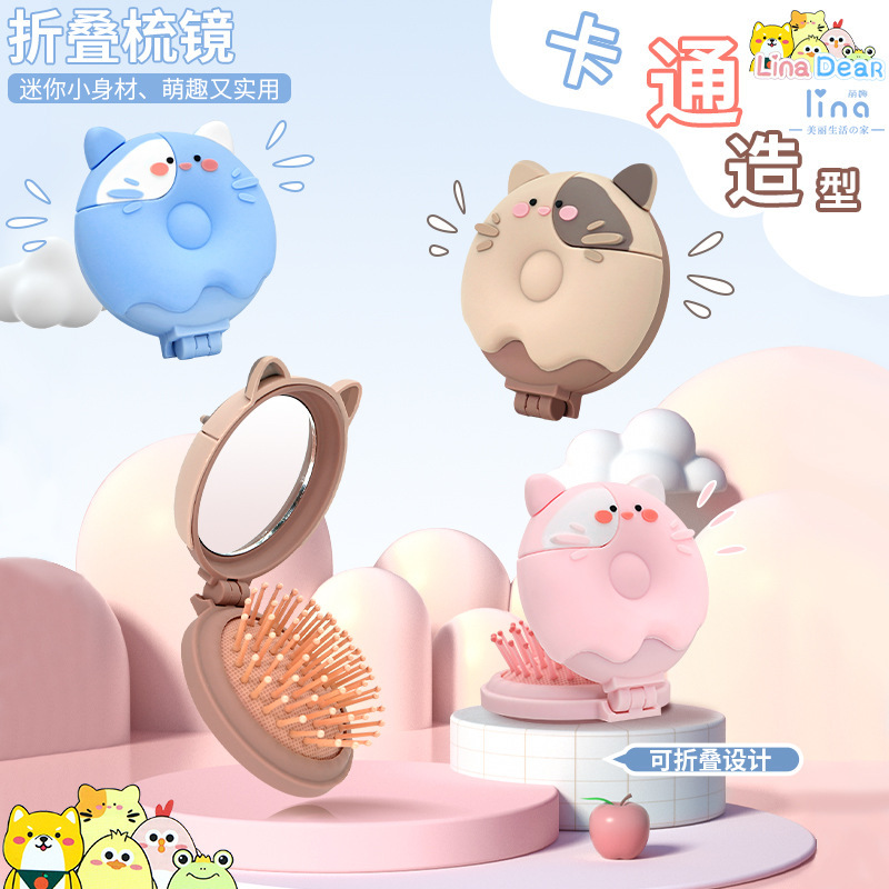小梳子随身便携折叠梳女士儿童气囊气垫顺发按摩迷你镜子一体梳子