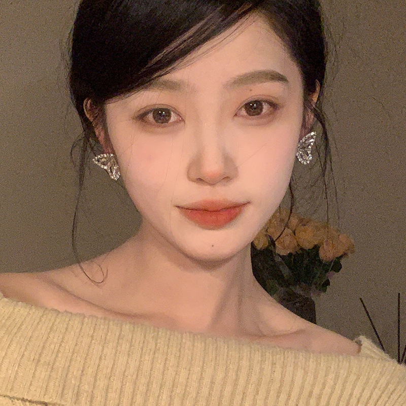 气质满钻镂空蝴蝶翅膀耳环小众设计感高级感轻奢耳钉简约百搭耳饰