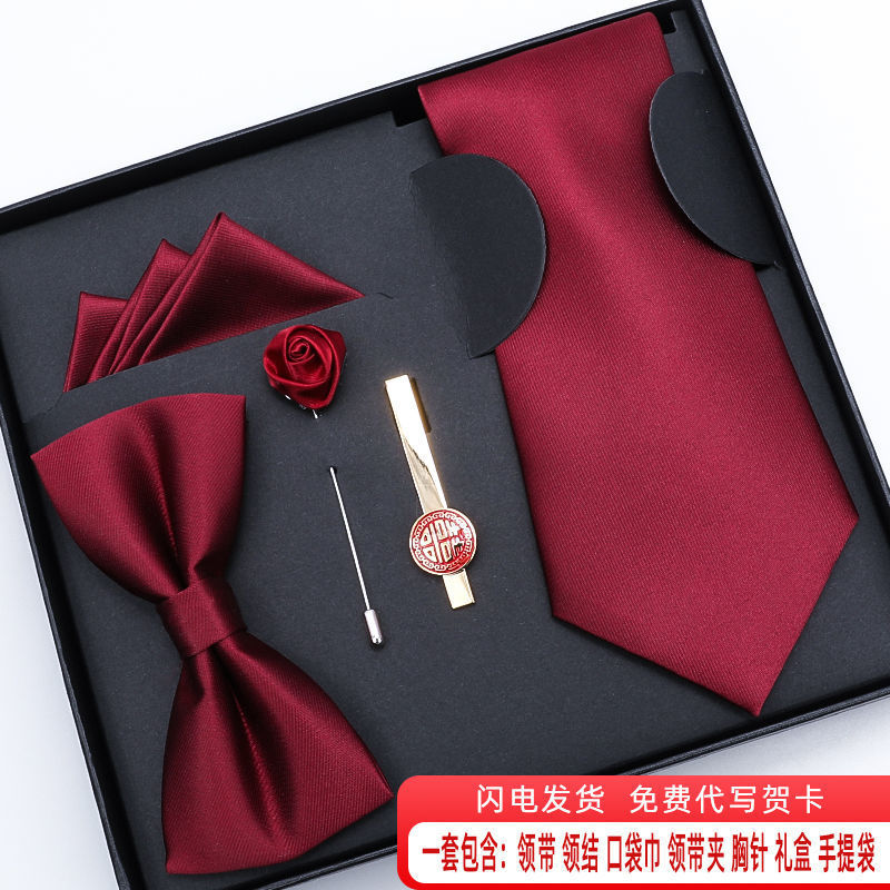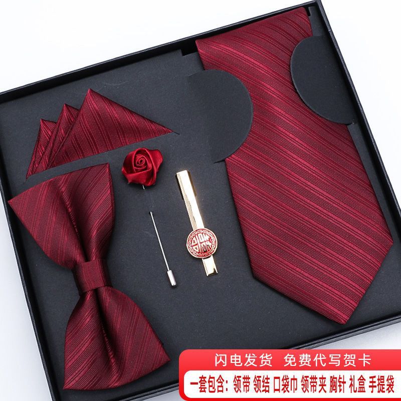 礼盒五件套领带男士正装商务结婚新郎领结方巾领带夹送男友