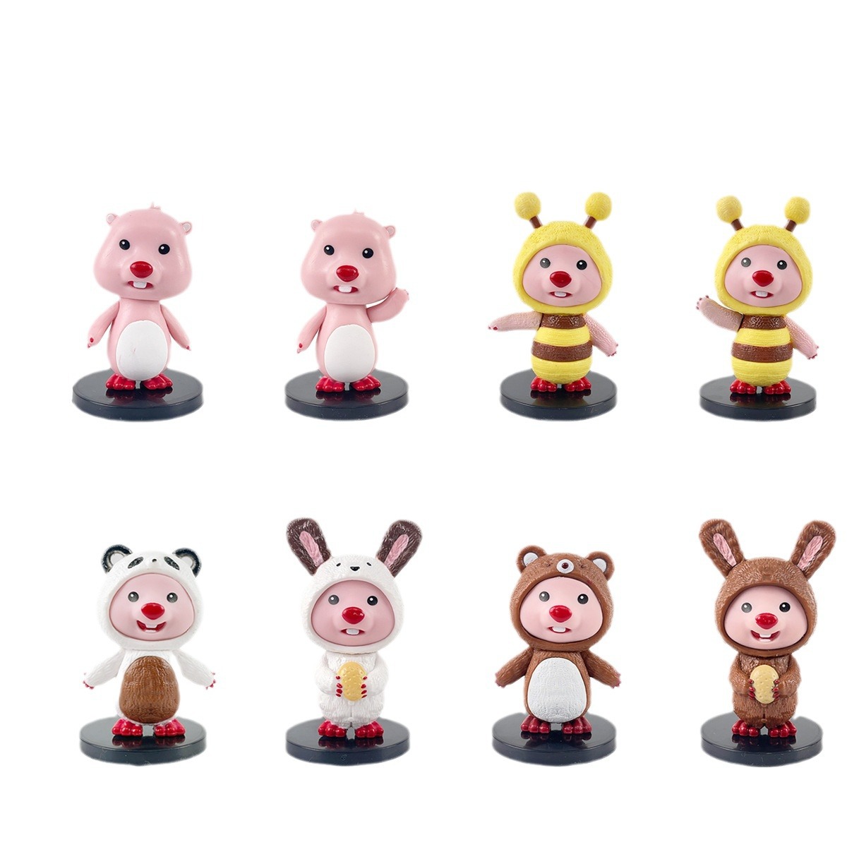 跨境新品 海狸露比动物装盲盒手办 娃娃机粉色小海狸扭蛋动漫周边
