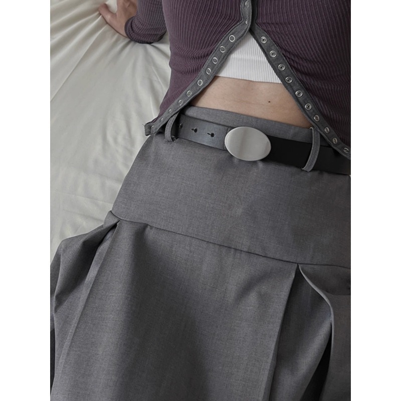 ins椭圆金属扣简约复古休闲韩系气质黑色皮带裤腰带潮流时尚女式