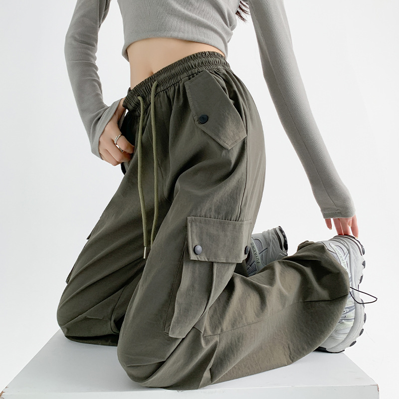 美式工装裤女夏薄款24新款显瘦直筒降落伞裤子宽松高腰阔腿运动裤