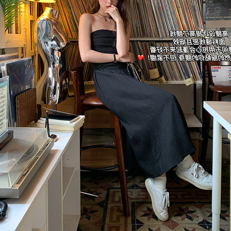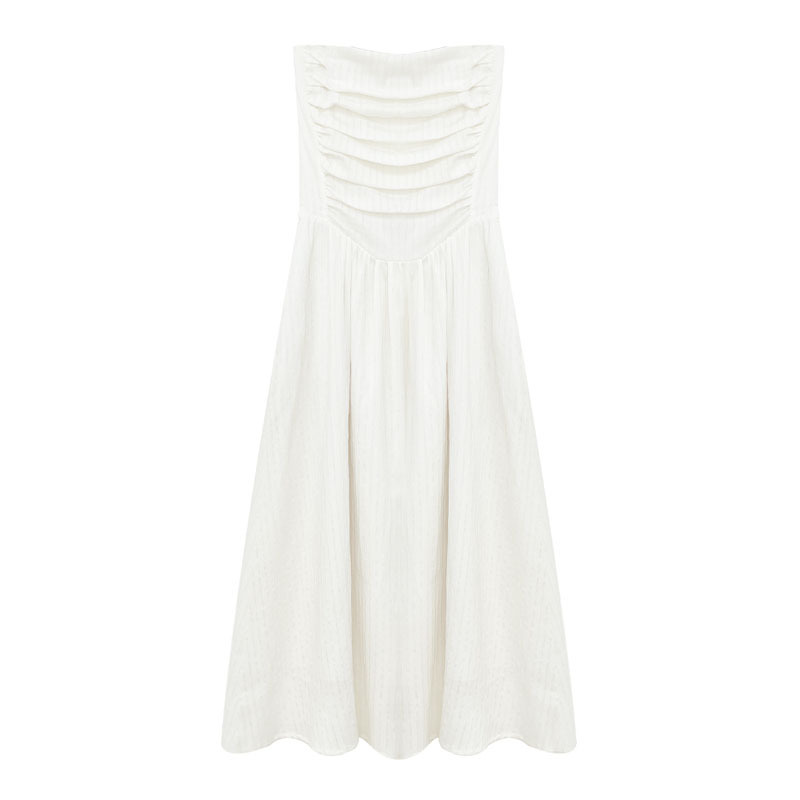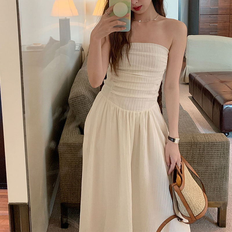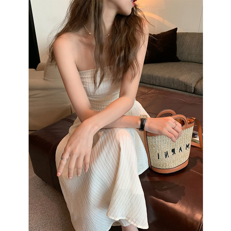 抹胸压褶高腰连衣裙春夏新款韩系叛逆千金风盐系裙子