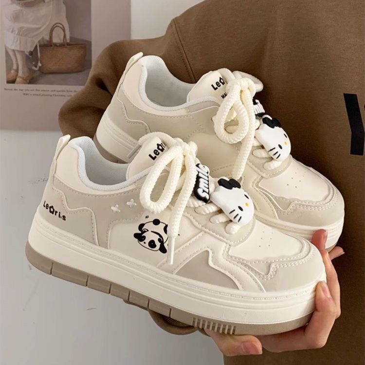 2025春季爆款熊猫黑白丑萌小白鞋子女厚底百搭休闲学生板鞋运动鞋