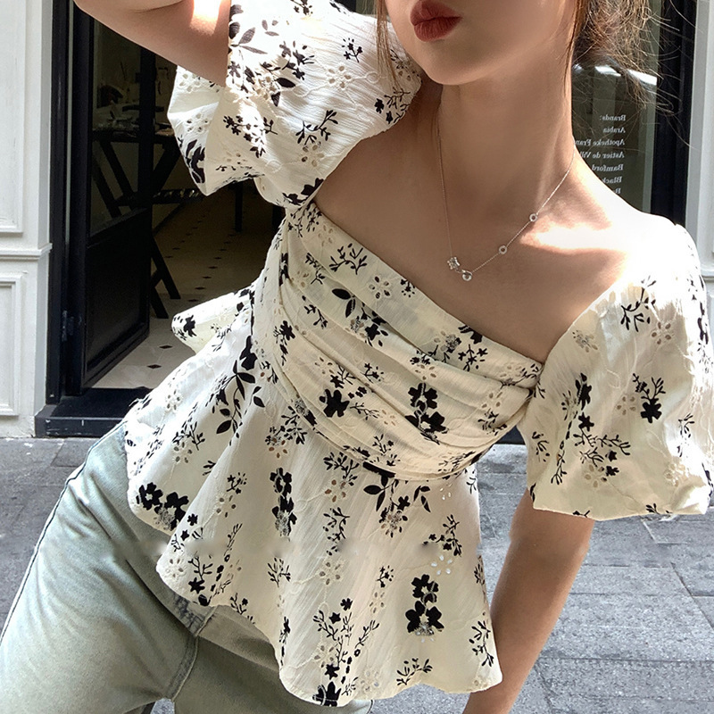 韩版设计感小众衬衫新款女夏短袖法式du特b致小上衣洋气衬衣