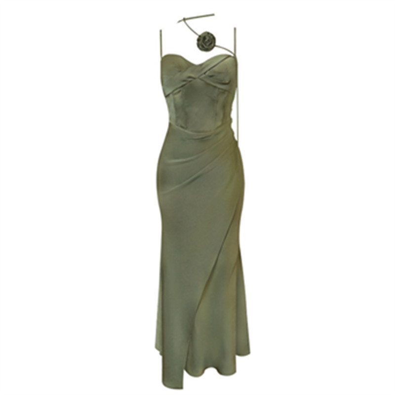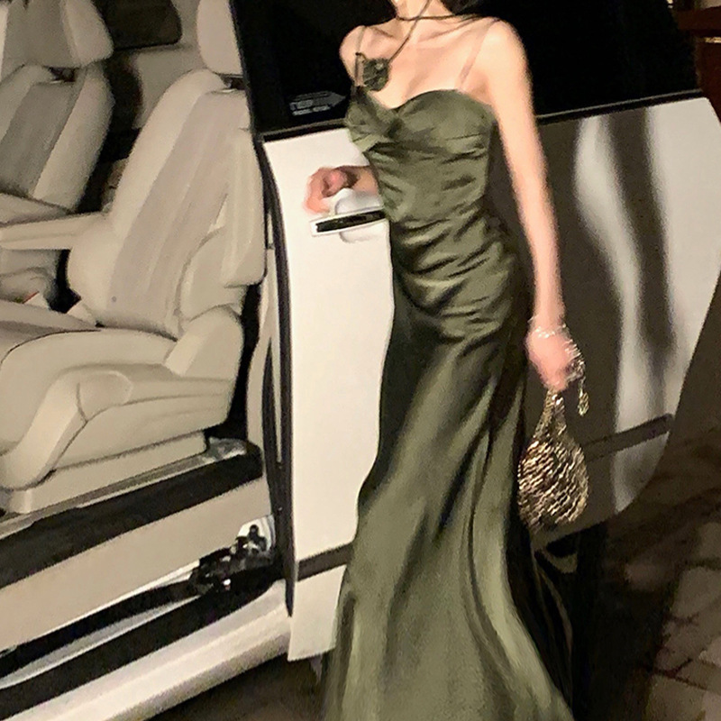 缎面吊带连衣裙女早春新款显瘦修身高级感长裙子