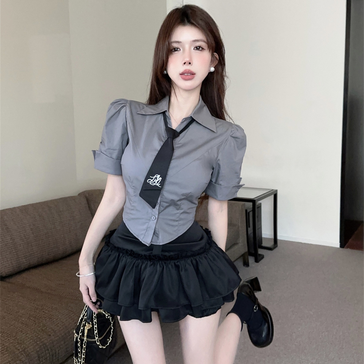 学院风JK制服套装日系甜辣短袖衬衫夏季辣妹性感蛋糕蓬蓬裙两件套