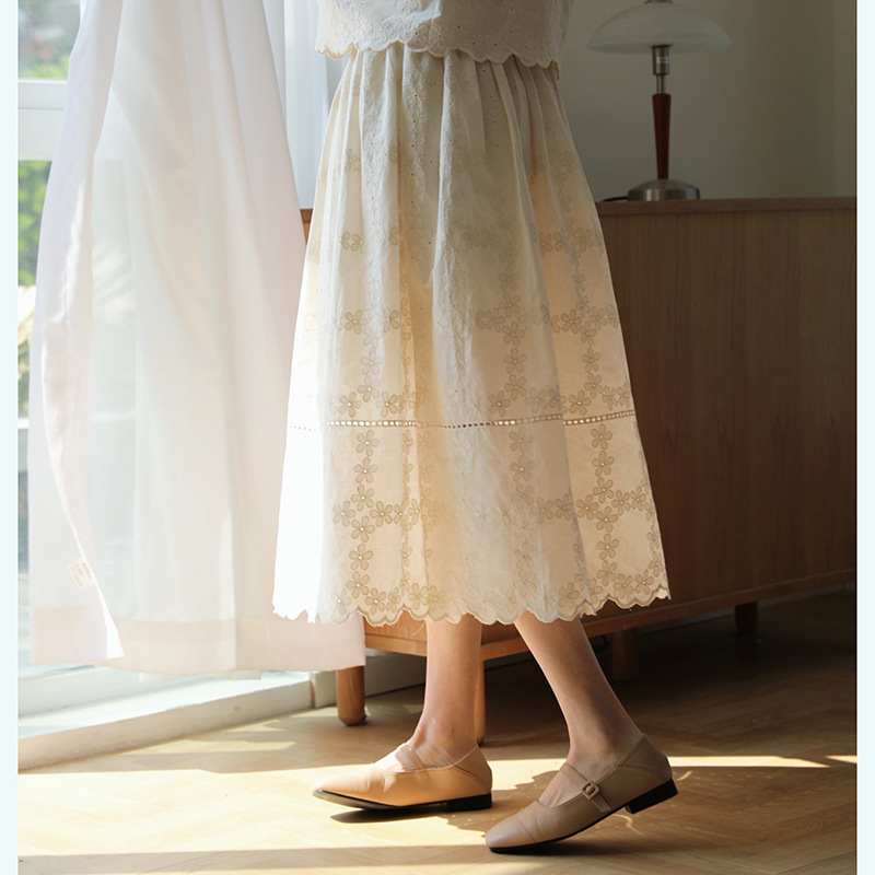 夏季新款 日系高腰刺绣棉显瘦仙女中长款半身裙女