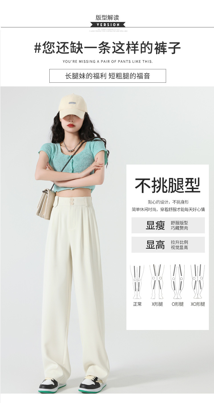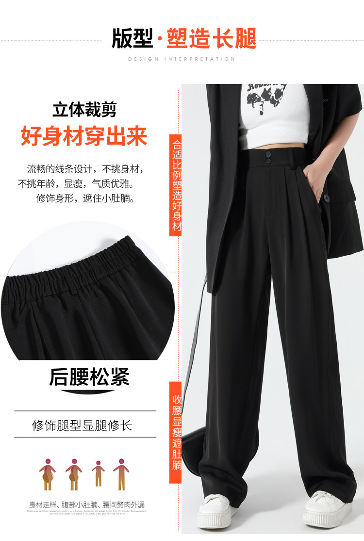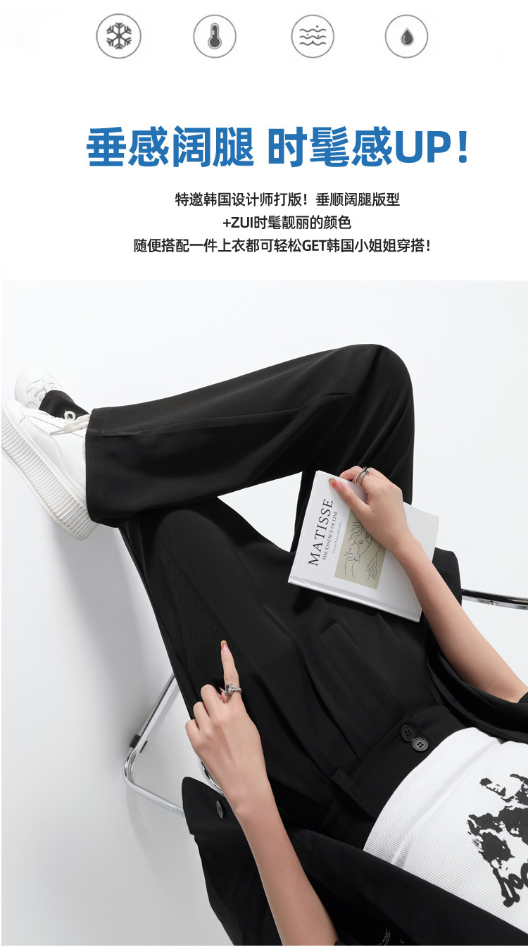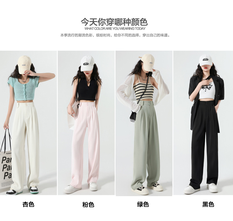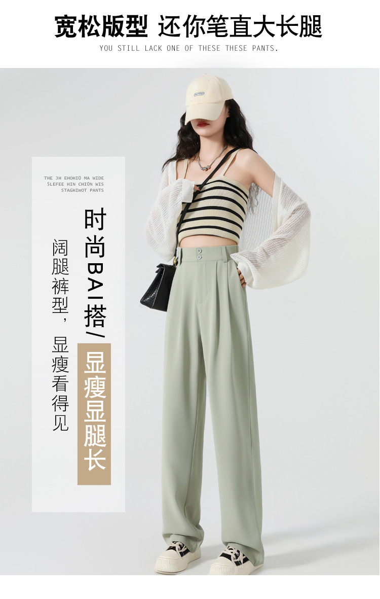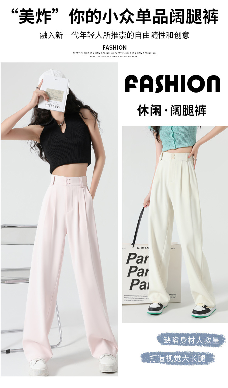 春夏新款窄版阔腿裤女直筒高腰垂感显瘦宽松休闲拖地裤
