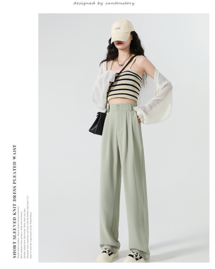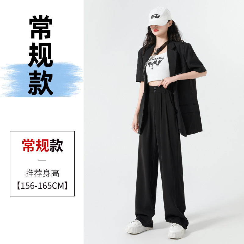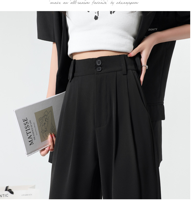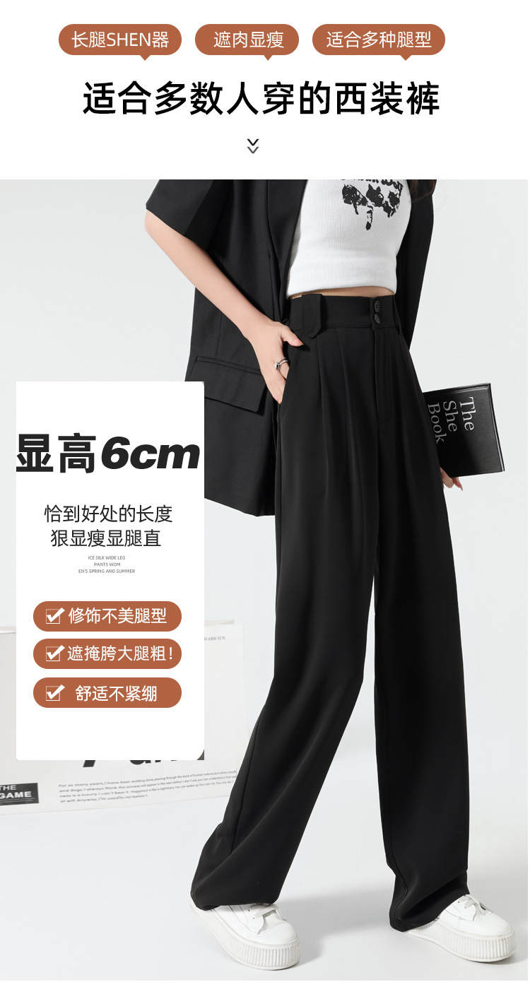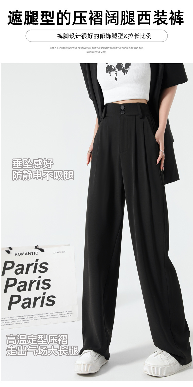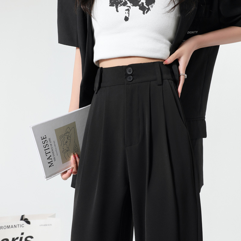 春夏新款窄版阔腿裤女直筒高腰垂感显瘦宽松休闲拖地裤