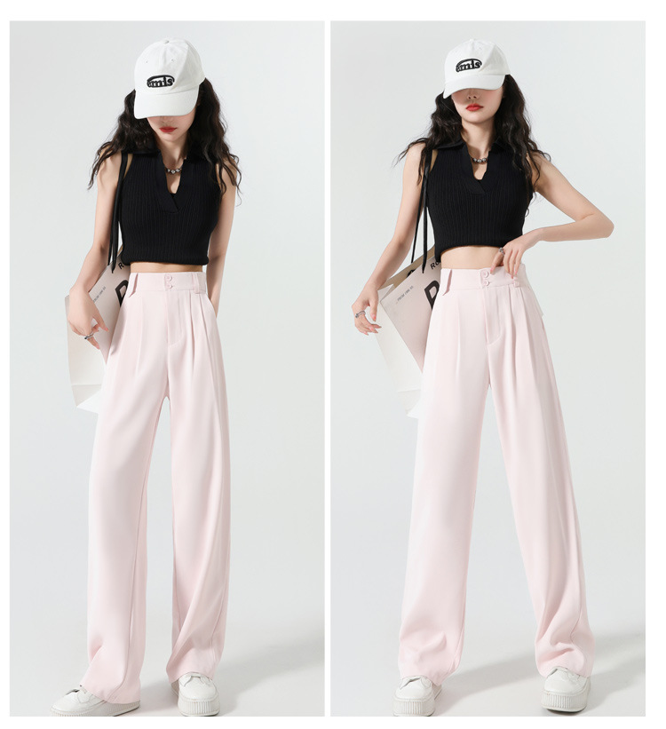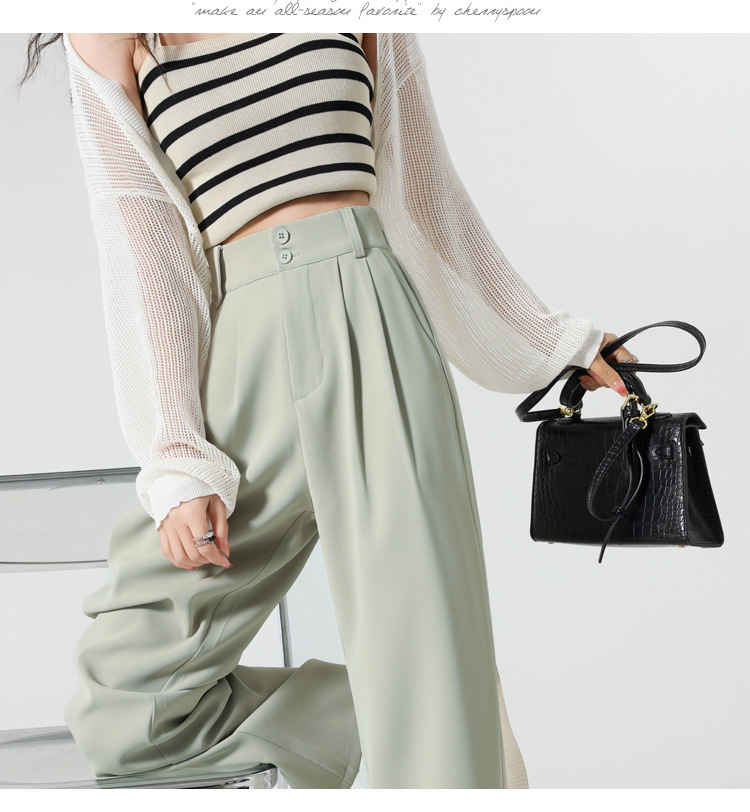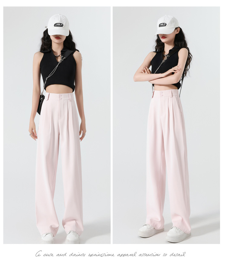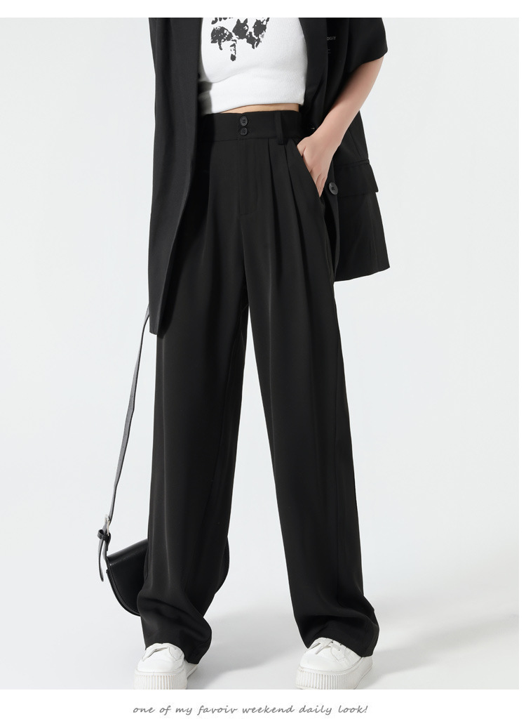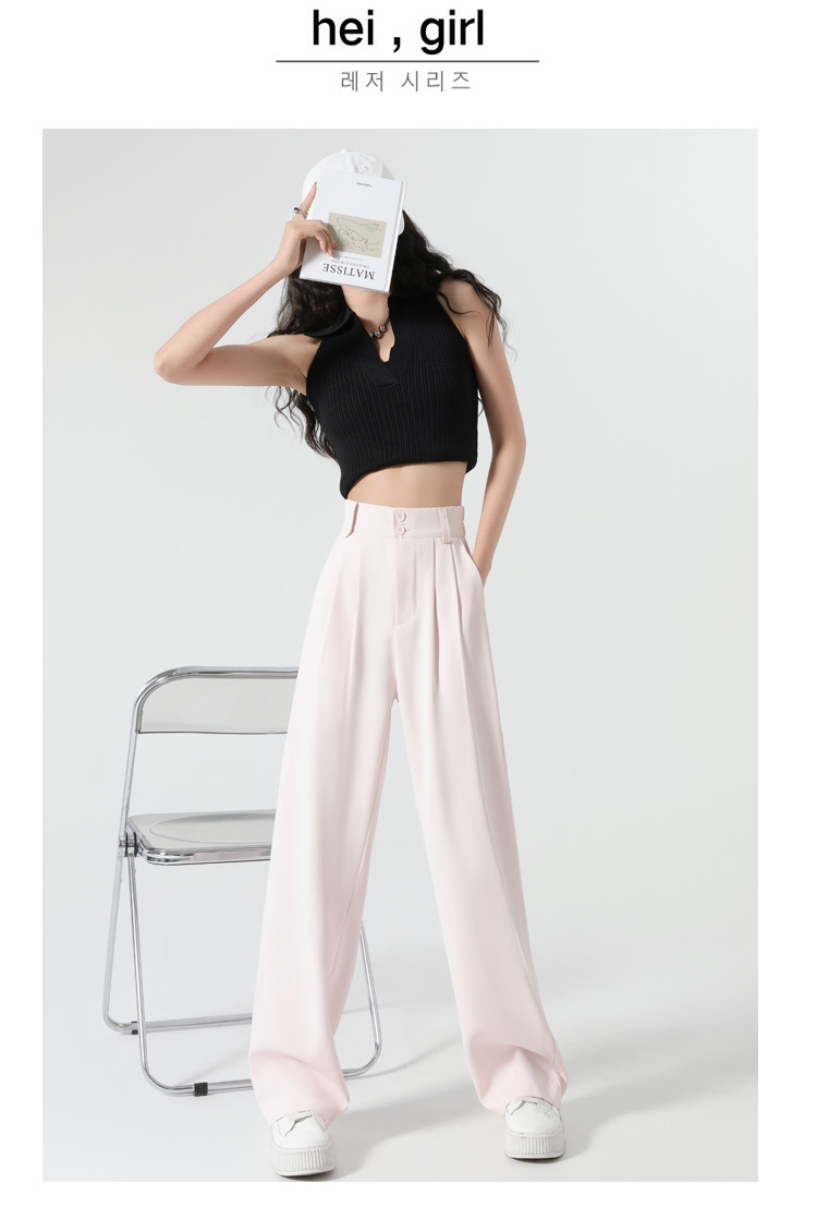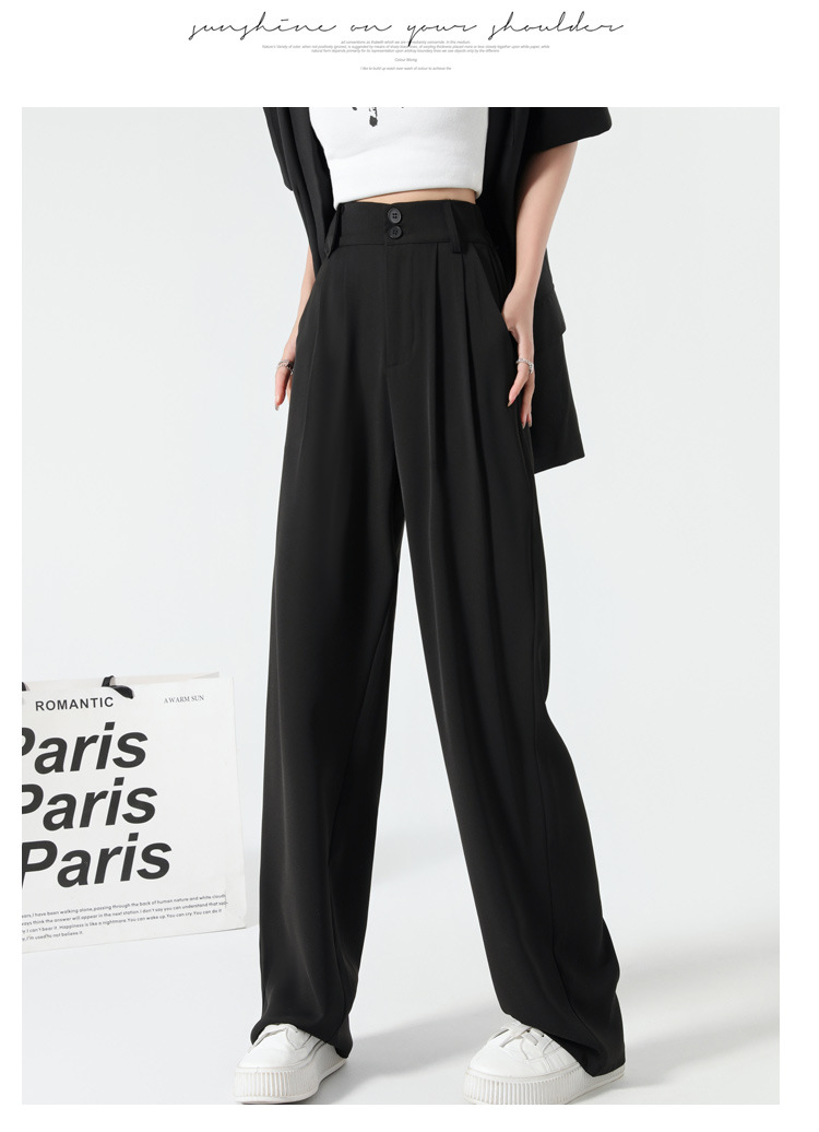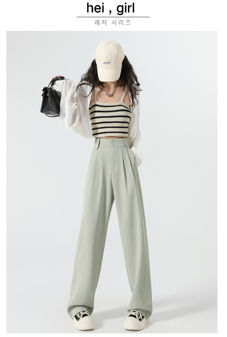 春夏新款窄版阔腿裤女直筒高腰垂感显瘦宽松休闲拖地裤