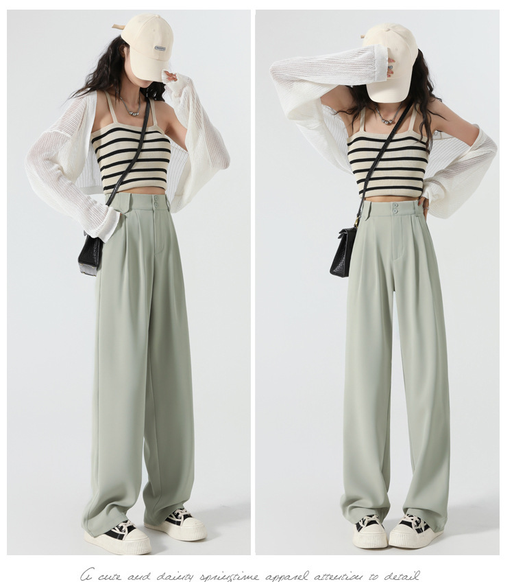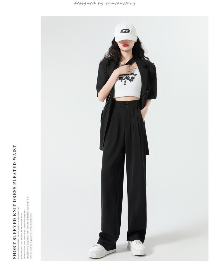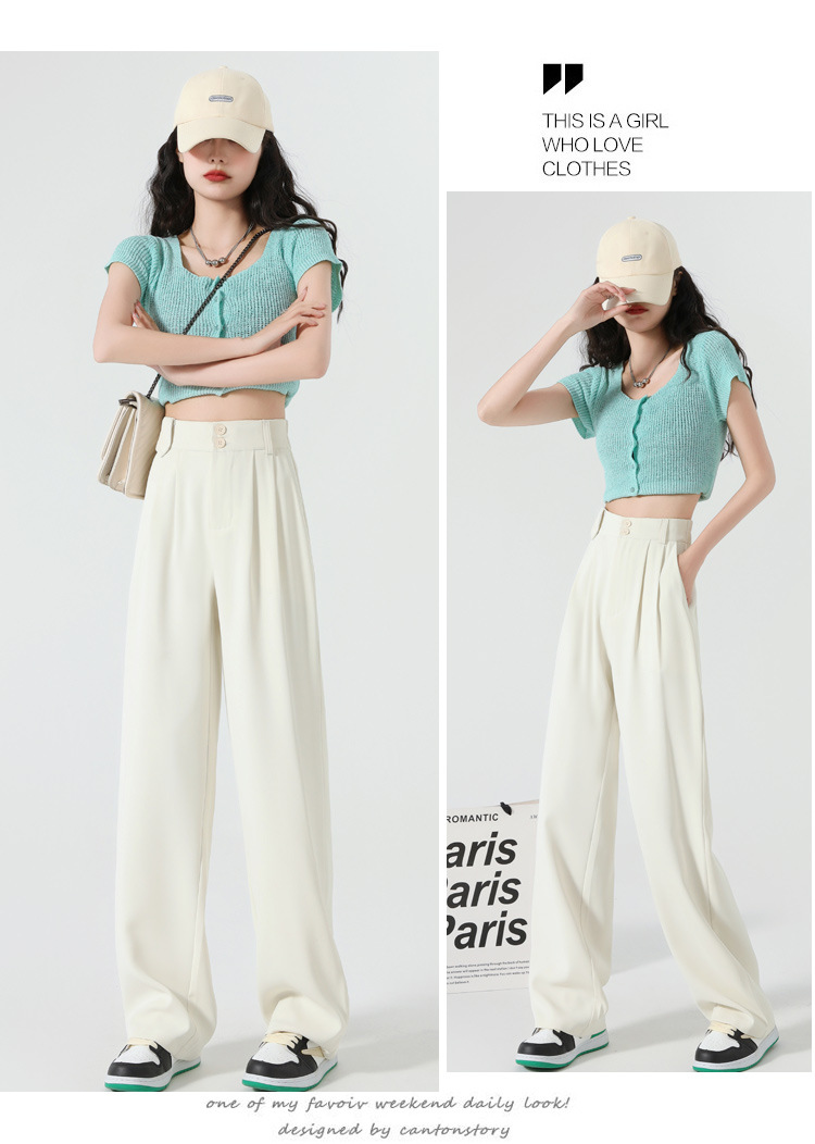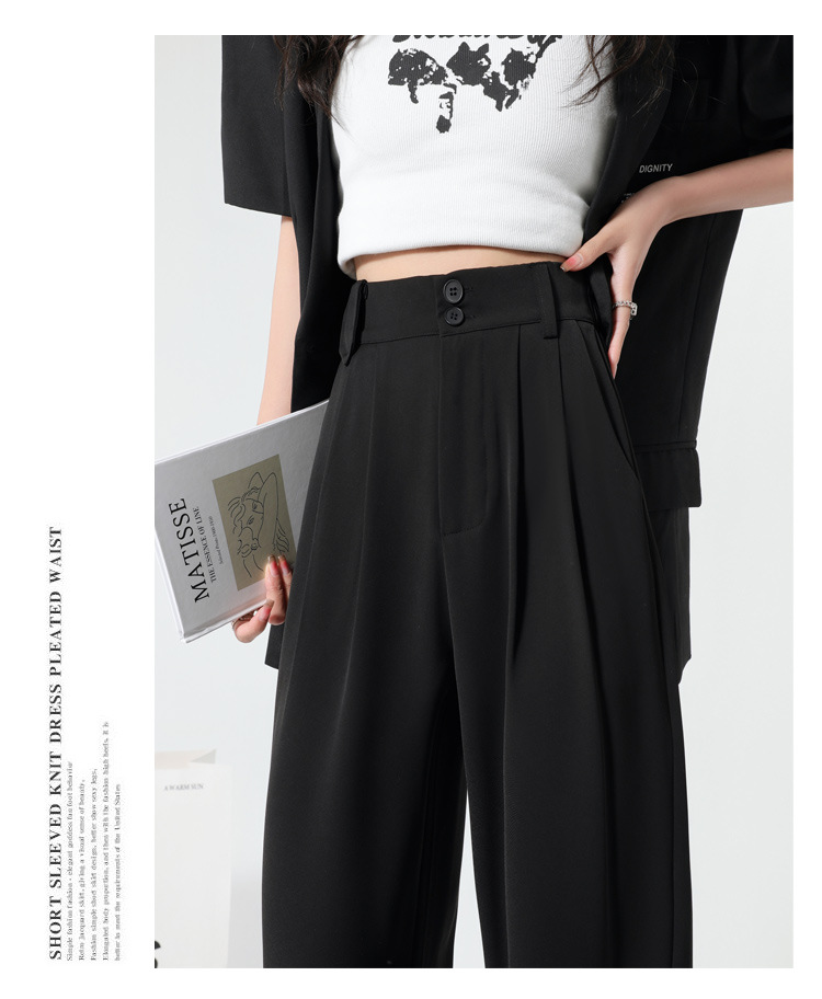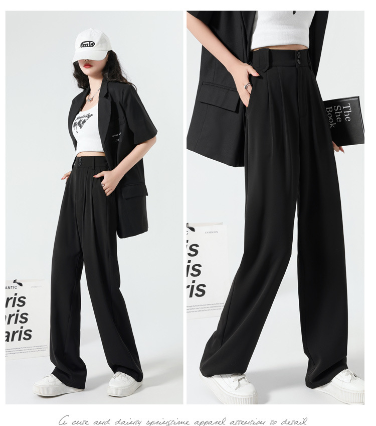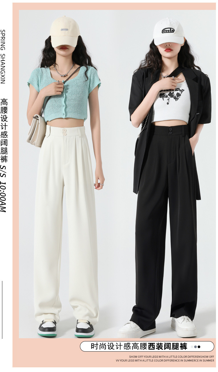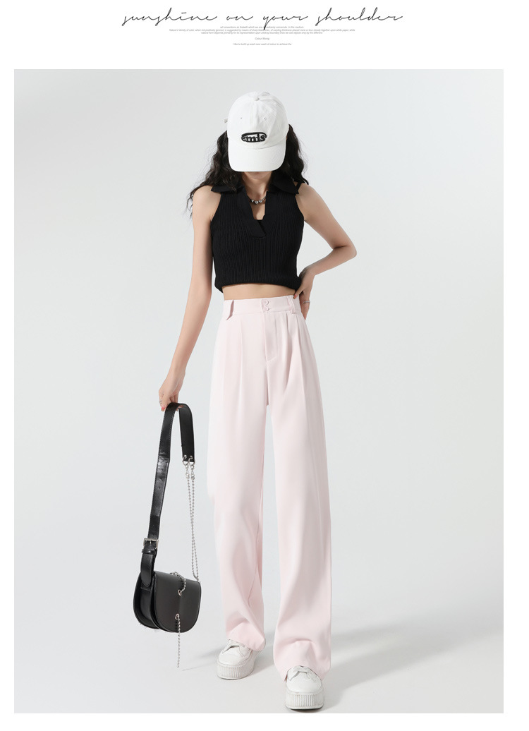 春夏新款窄版阔腿裤女直筒高腰垂感显瘦宽松休闲拖地裤