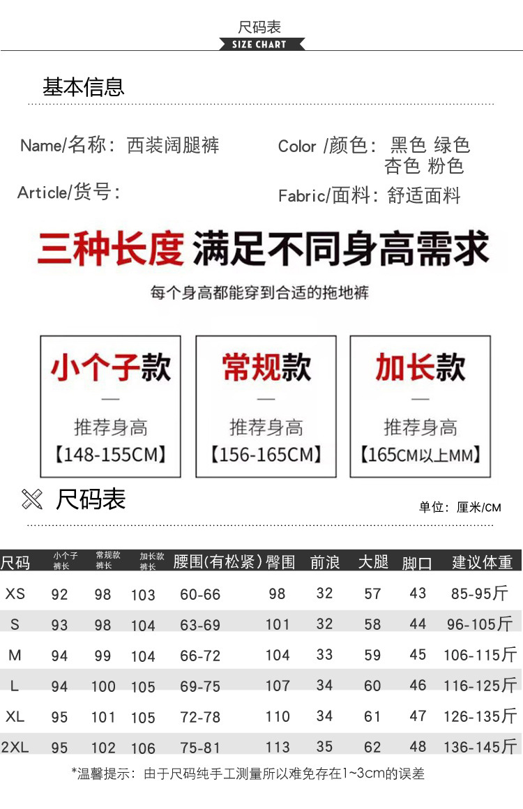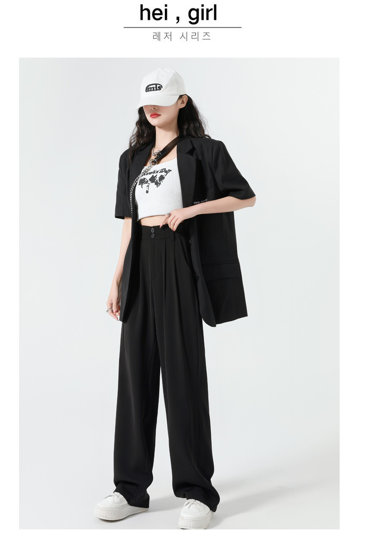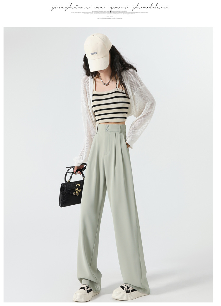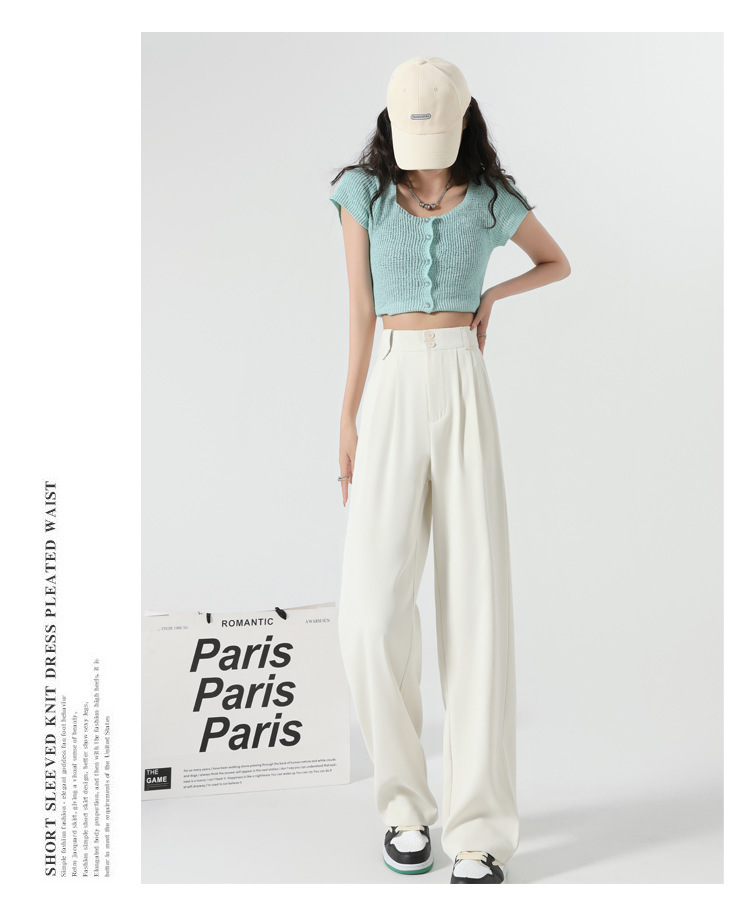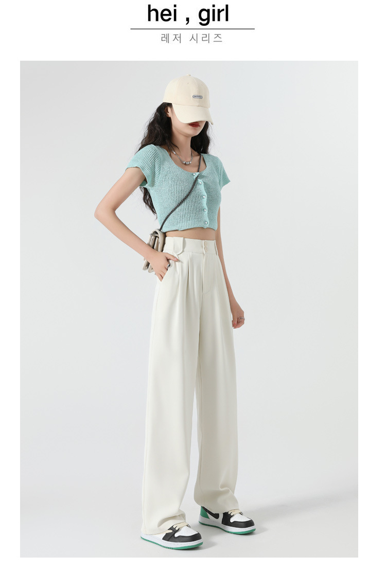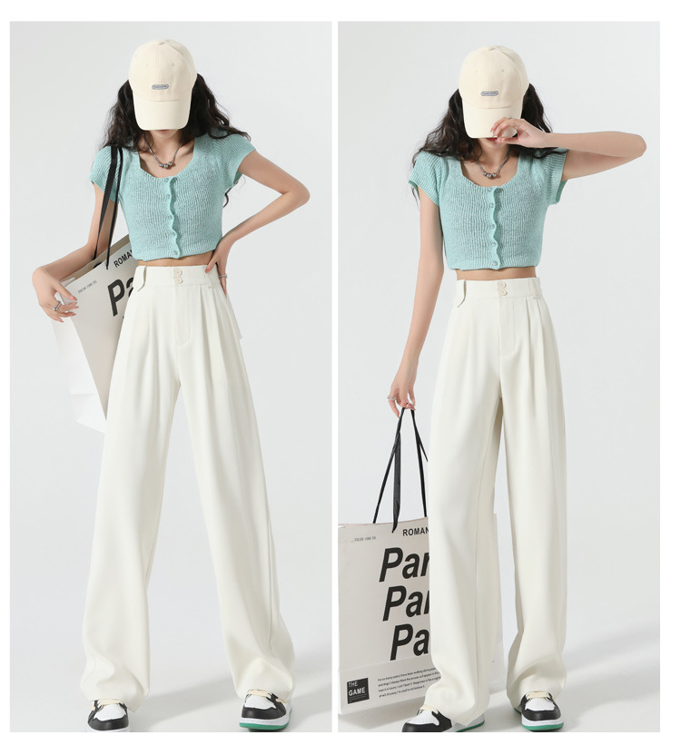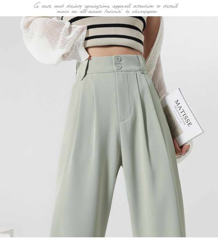 春夏新款窄版阔腿裤女直筒高腰垂感显瘦宽松休闲拖地裤