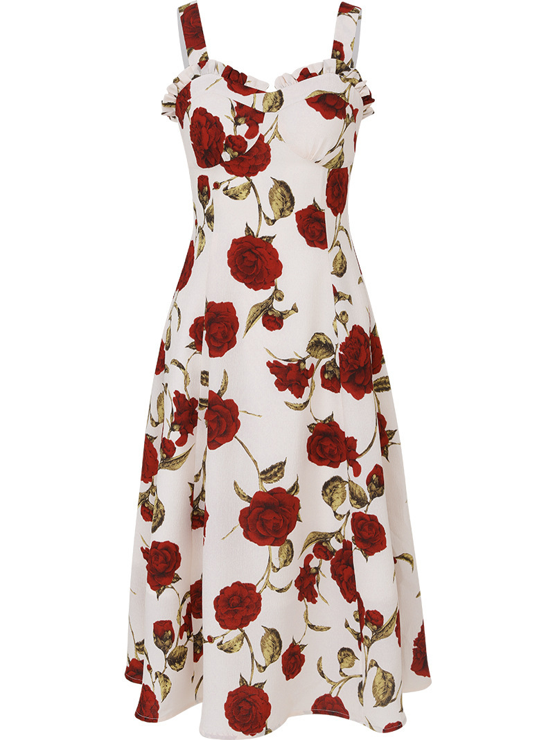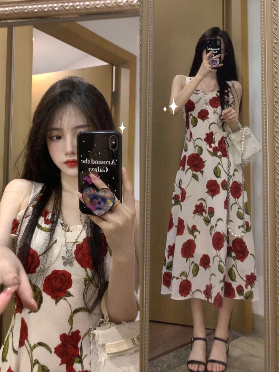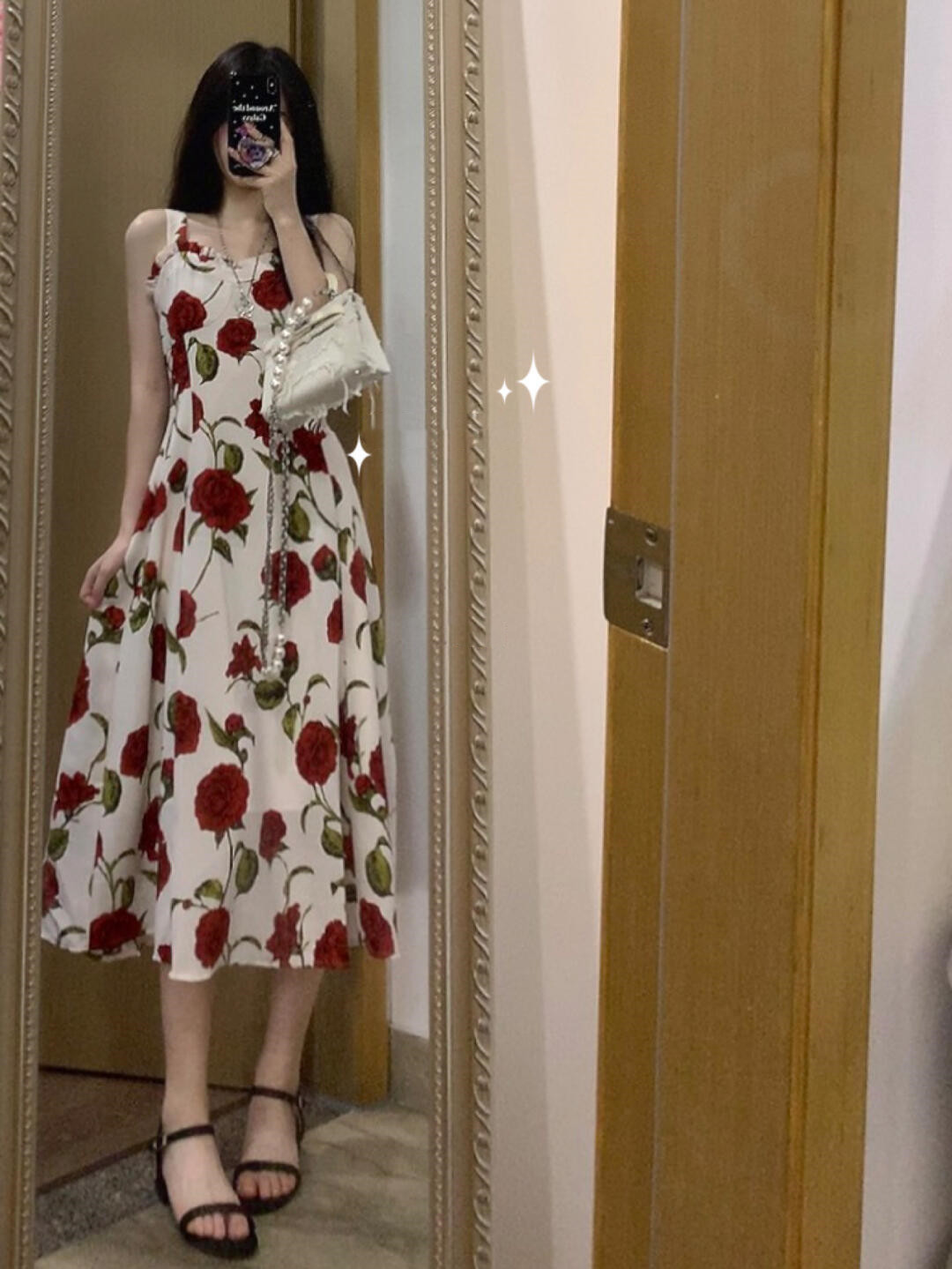 碎花吊带连衣裙女夏新款高级感茶歇法式雪纺海边度假气质长裙