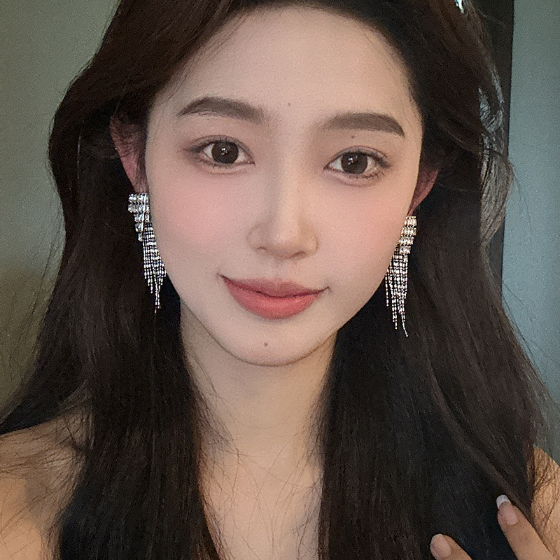 温婉气质锆石流苏耳环女轻奢时尚镶钻长款显脸小耳坠