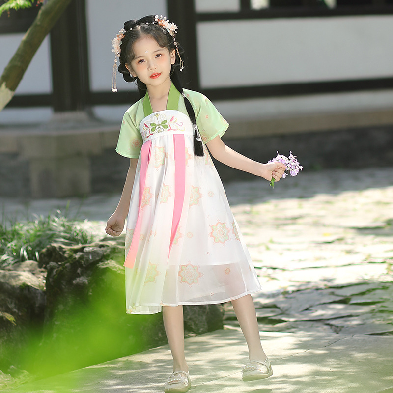 汉服女童连衣裙夏季薄款短袖唐装亲子唐装中国风超仙连衣裙