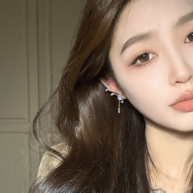 气质高级感银色锆石花朵耳环耳夹一体式冷淡风百搭耳钉轻奢耳饰潮