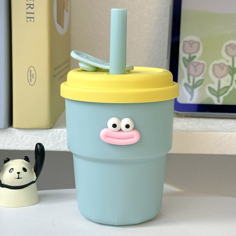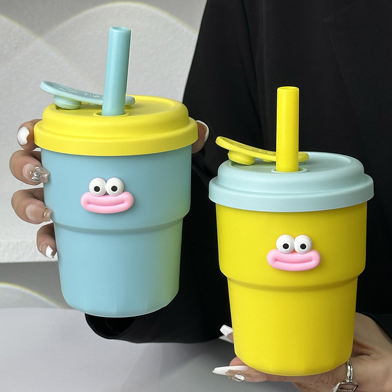 水杯女上班族新款ins风可爱粉小嘴贴女生吸管杯便携大容量塑料杯
