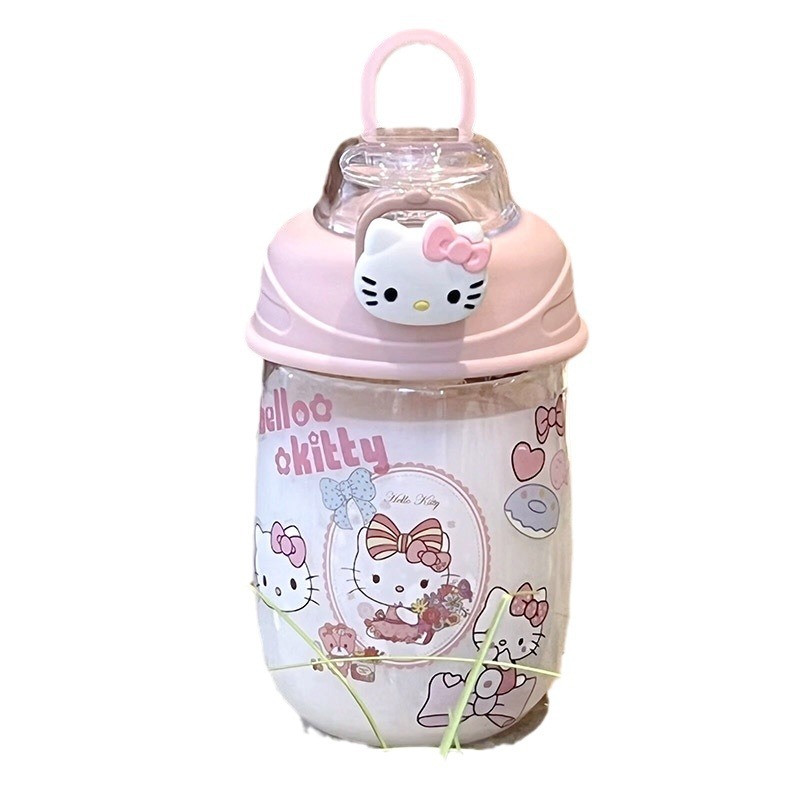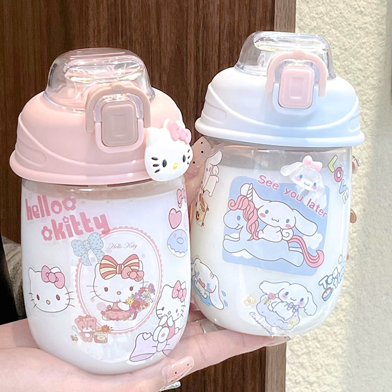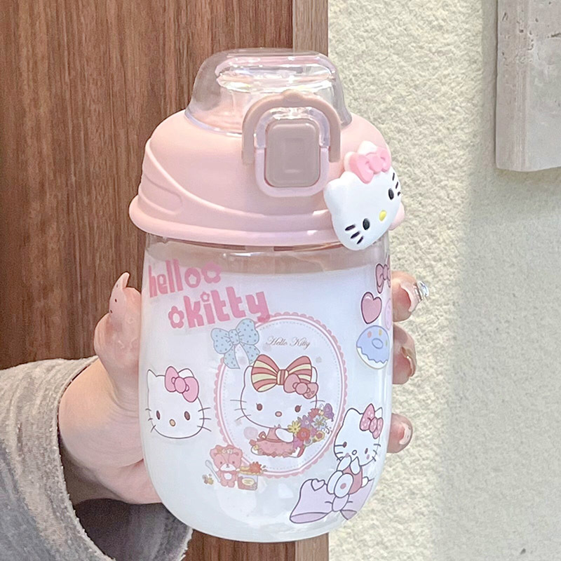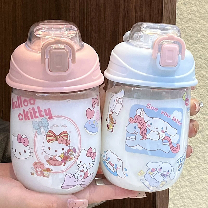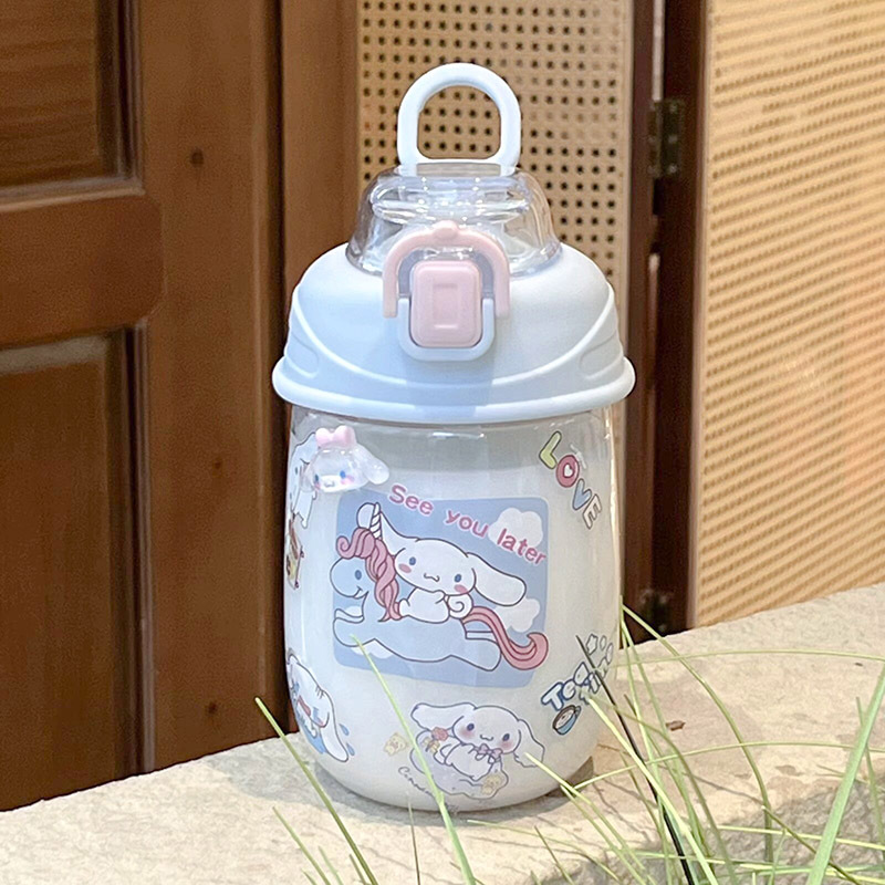 水杯新款ins风女上班族可爱贴纸女生吸管杯便携杯子大容量弹跳杯