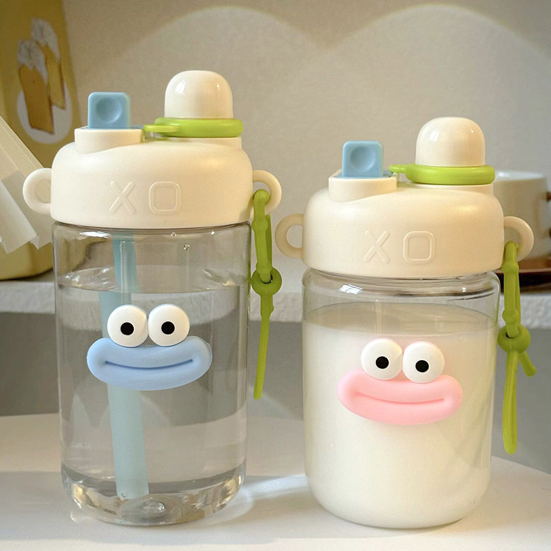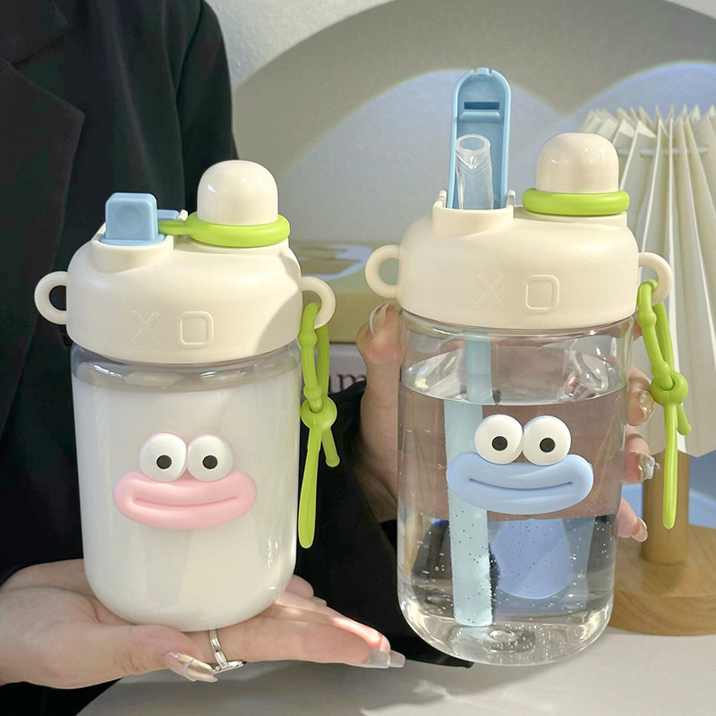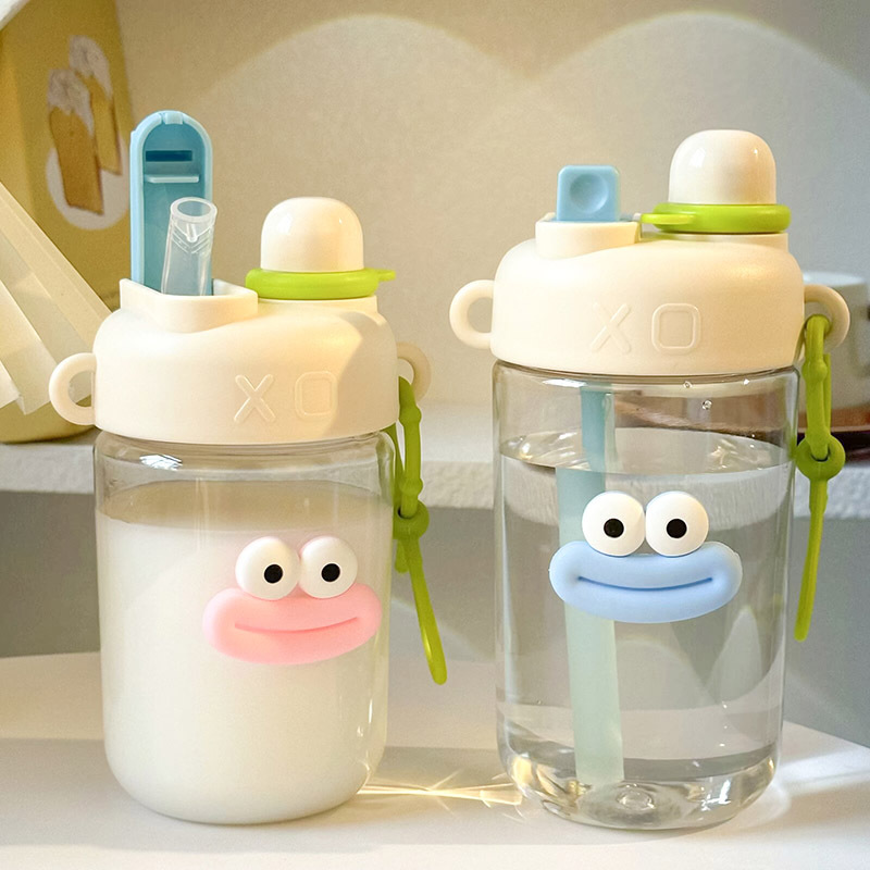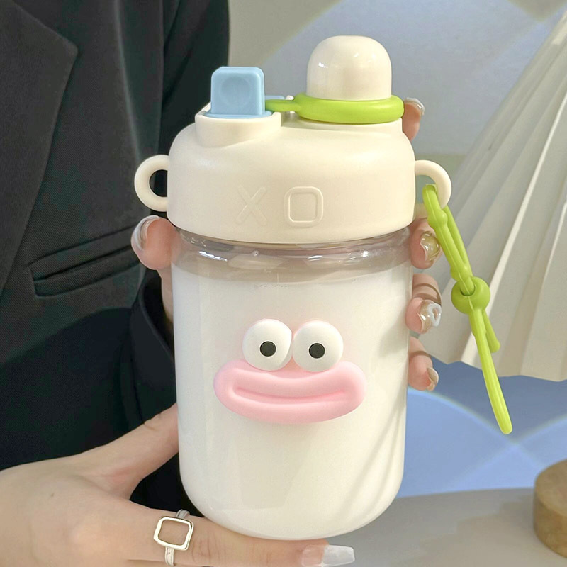 女生水杯提绳新款防漏女生吸管杯便携大容量双饮塑料杯耐摔可爱贴